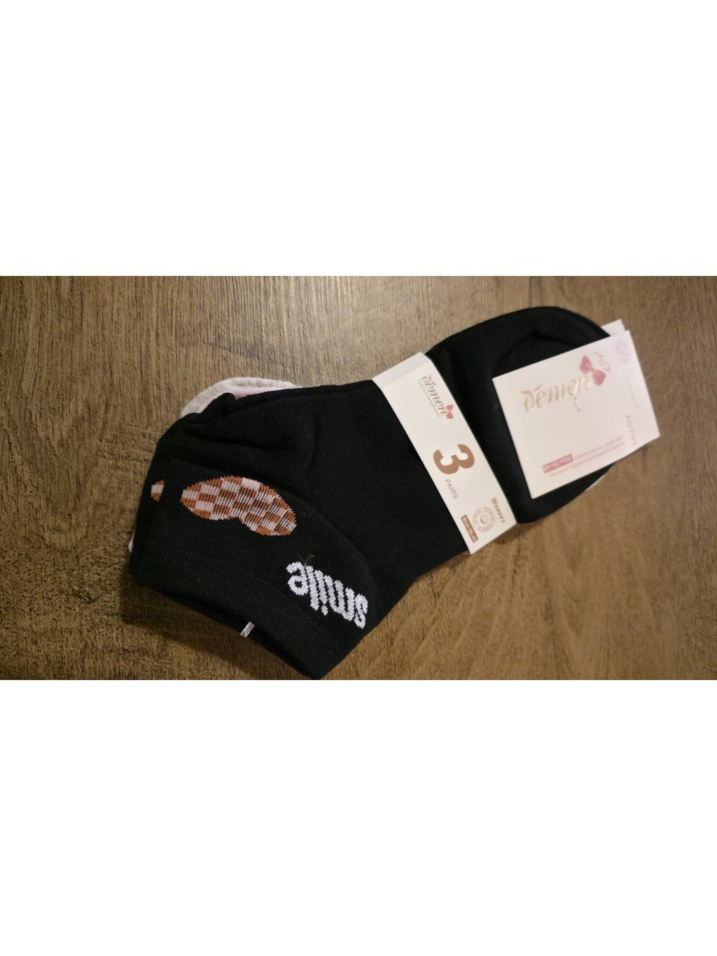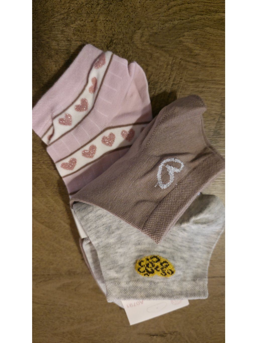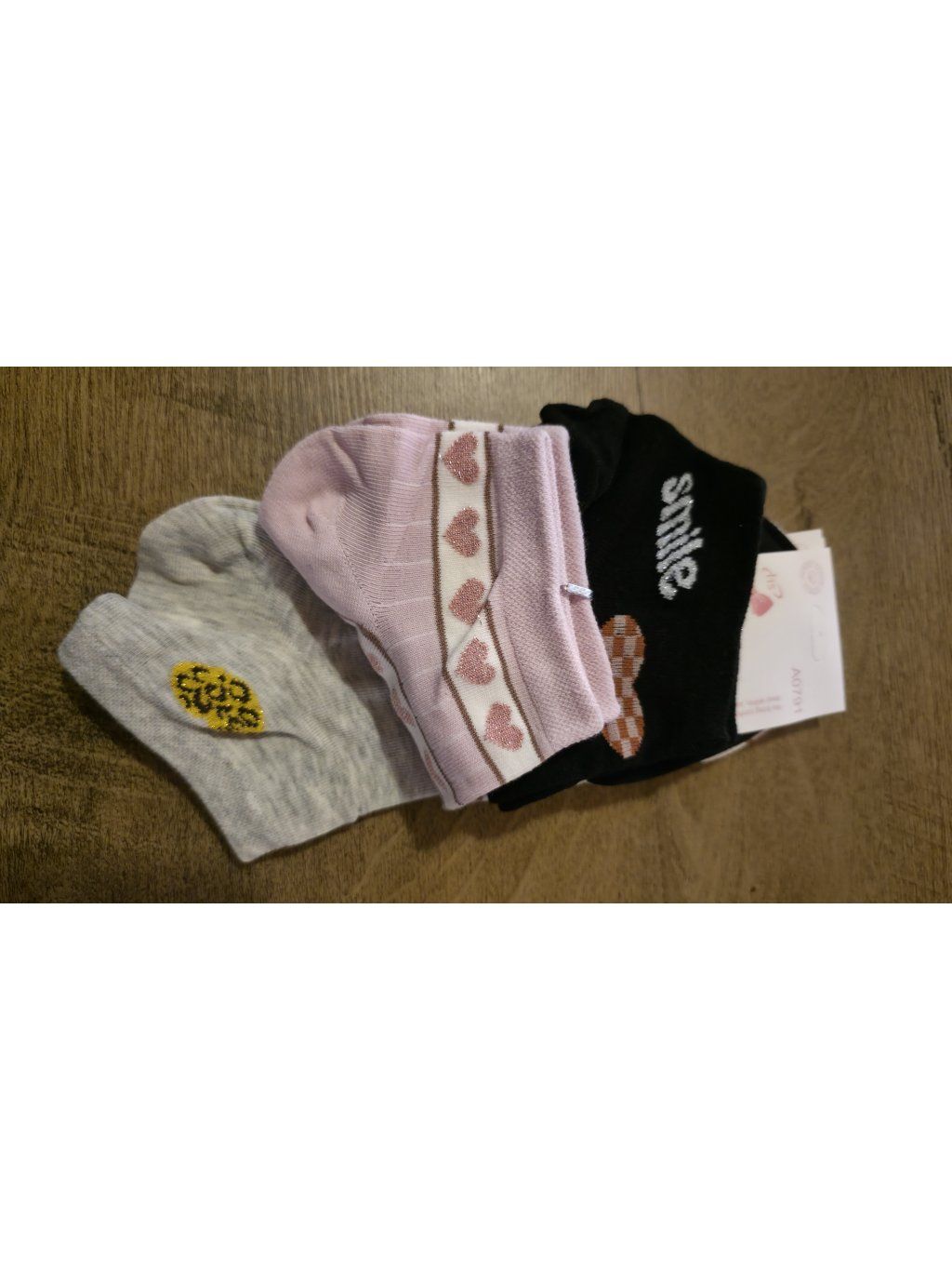 Trojbalení nízkých ponožek, které kombinují pohodlí a hravý detail. Každý pár má jiný design – od jemných srdíček přes třpytivé prvky až po stylový nápis „smile“.