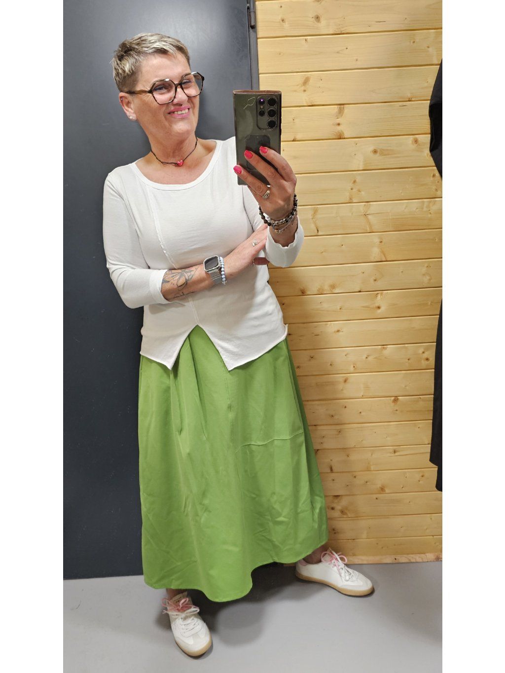 Má krásný áčkový střih, který přirozeně splývá přes boky a vytváří ženskou siluetu bez obepínání. V pase je pružná guma, takže se přizpůsobí a nikde netlačí.
