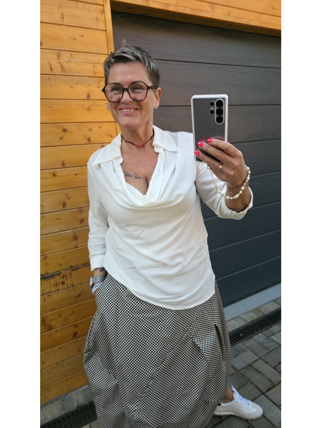Halenka krásně vynikne v kombinaci s balónovou sukní, širokými kalhotami nebo džínami. Pro ležérní outfit ji doplňte teniskami, pro elegantnější styl mokasínami nebo lodičkami.
