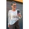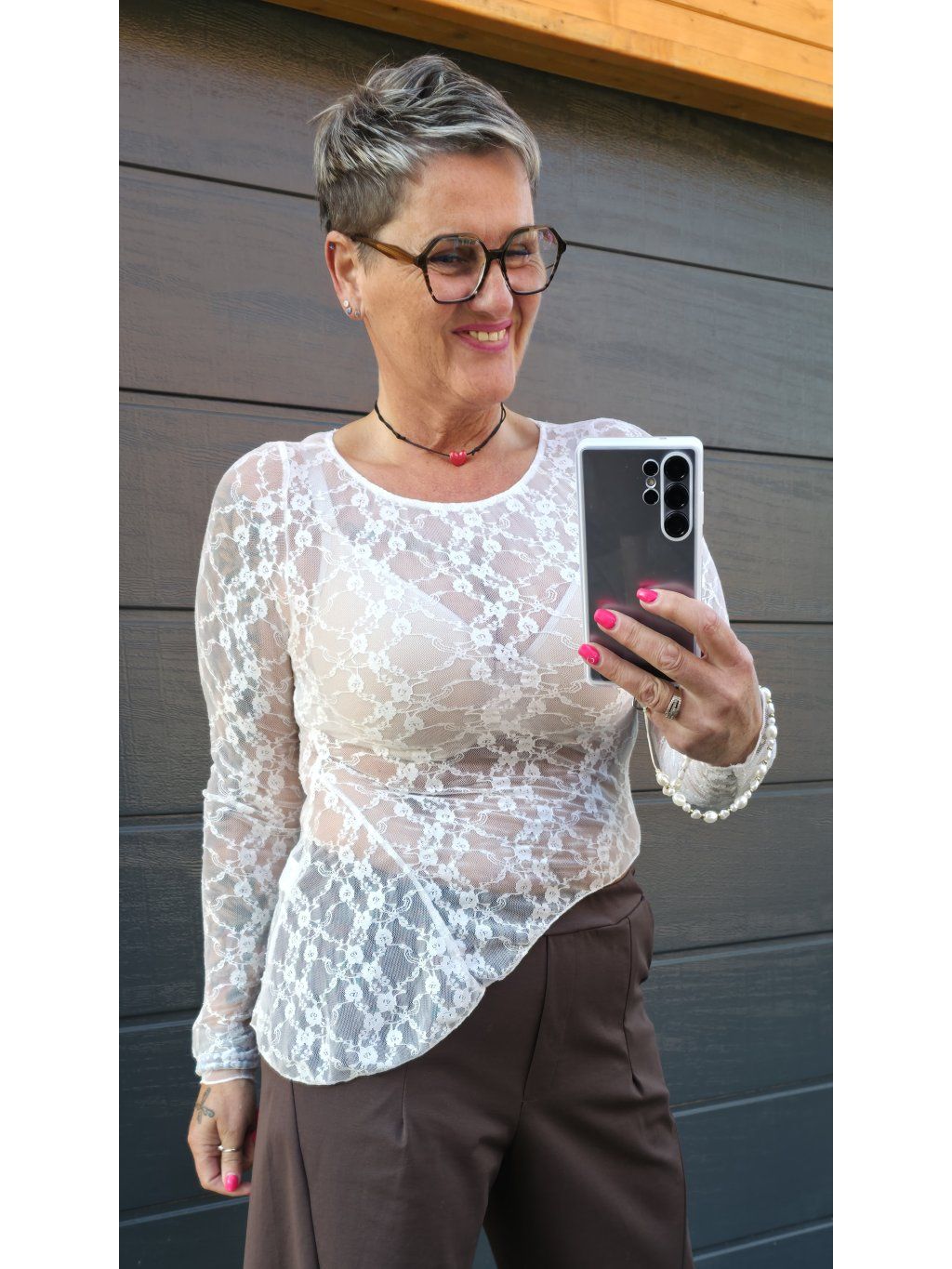 Lehké krajkové tričko s asymetrickým střihem a dlouhým rukávem. Elegantní a zároveň velmi ženský kousek, který krásně doplní každý outfit.