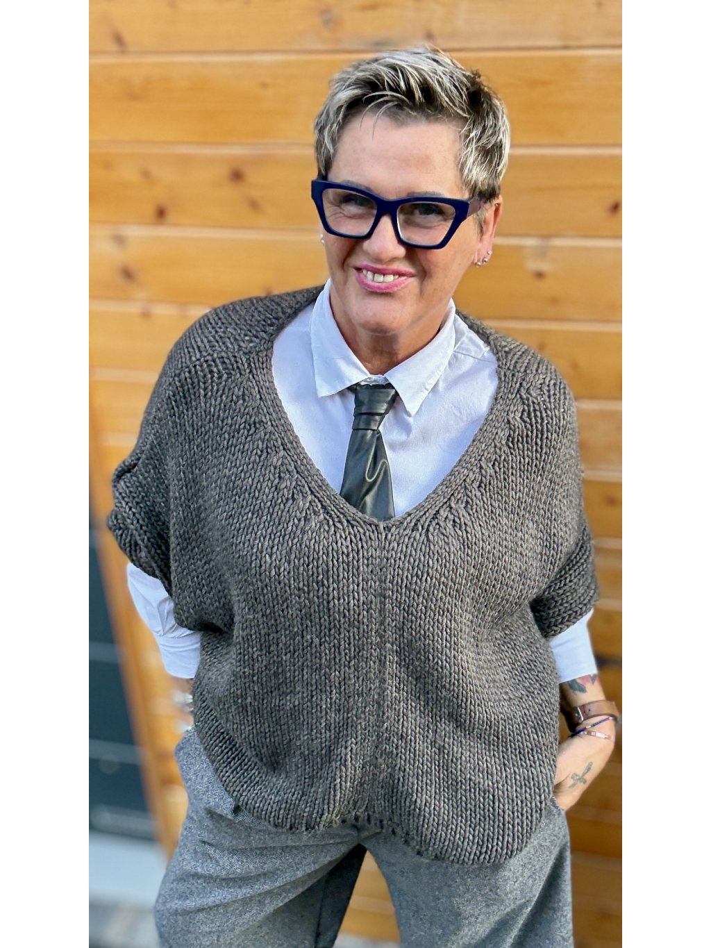 Materiál je krásně měkký, teplý a příjemný na těle – ideální pro vrstvení přes košili, tričko nebo tenký rolák.