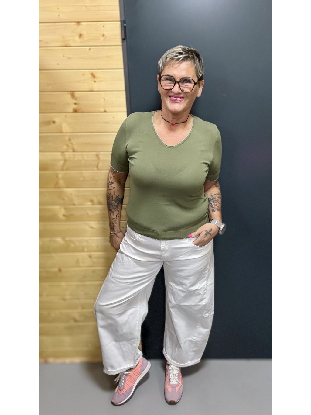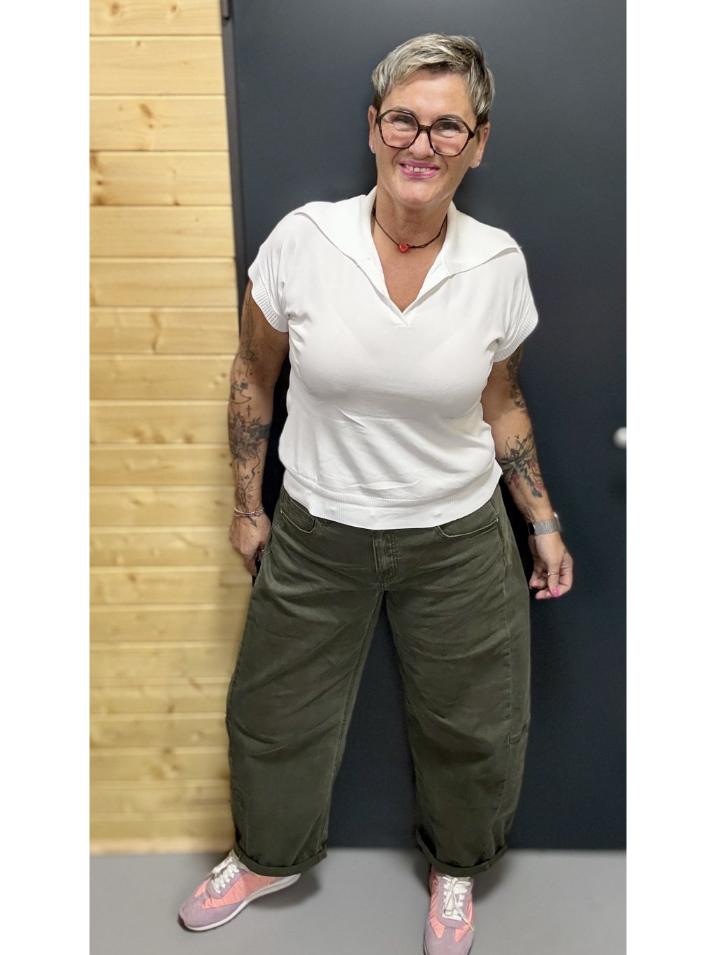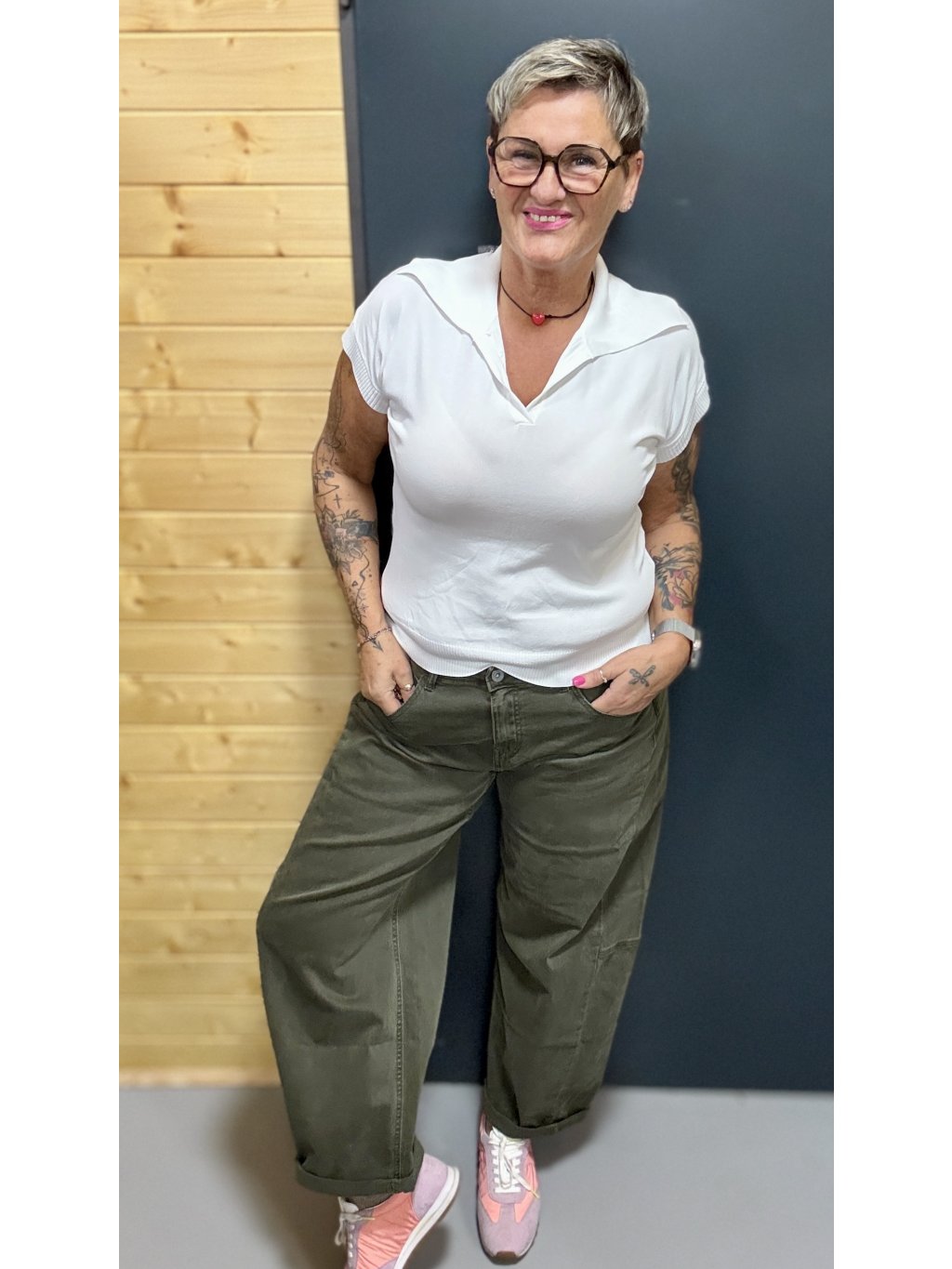 Volnější barelkový tvar lichotí nohám, vytváří hezkou siluetu a zároveň nikde netlačí. Díky elastickému pasu se krásně přizpůsobí postavě a dovolí ti se volně hýbat celý den.