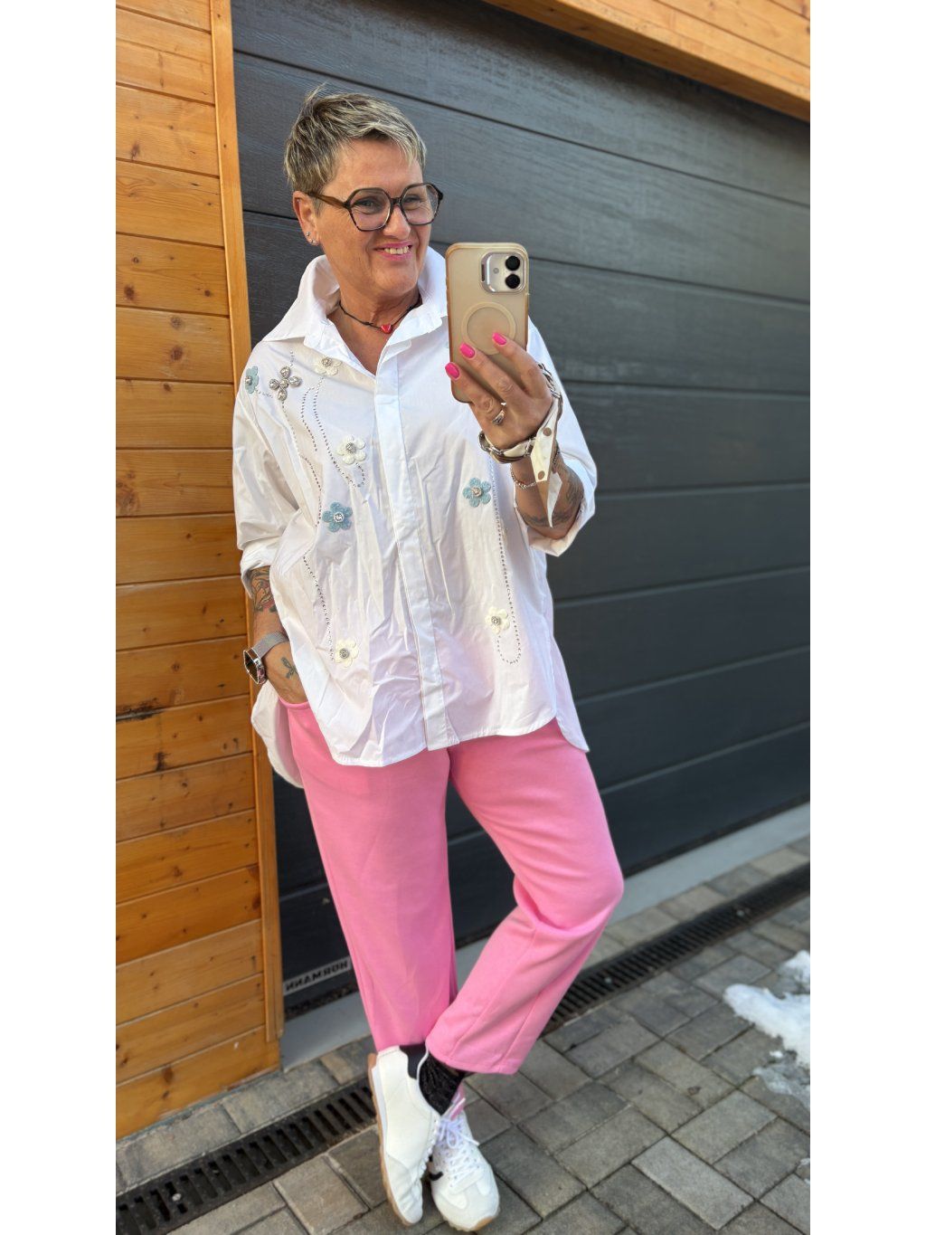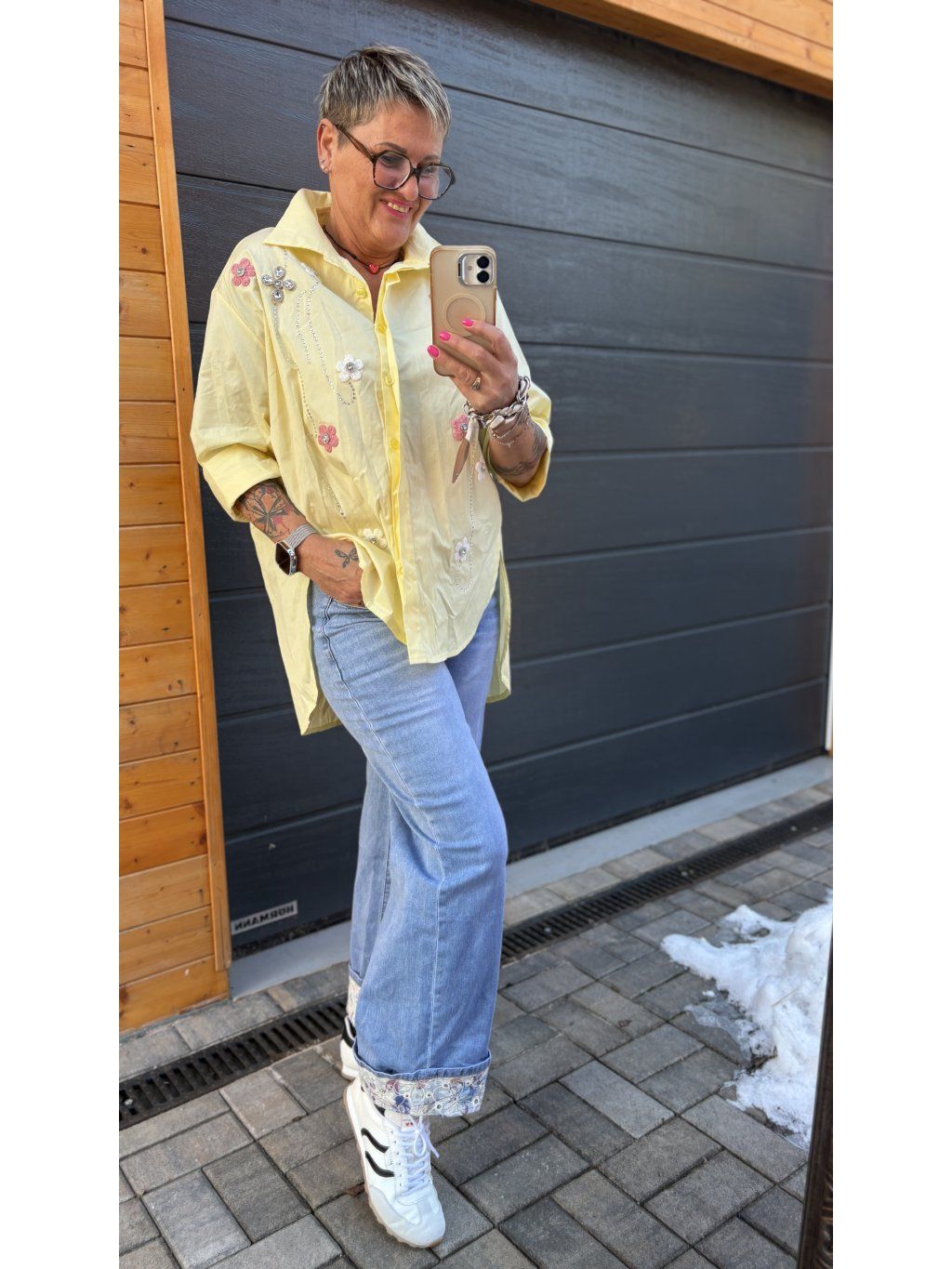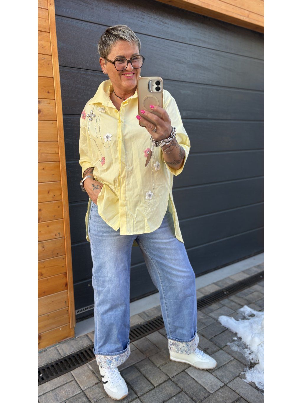 Na jaře ji unosíš samostatně, v chladnějších dnech krásně funguje i pod svetřík nebo lehké sako. Stačí bílé tenisky nebo mokasíny – a outfit je hotový ✨