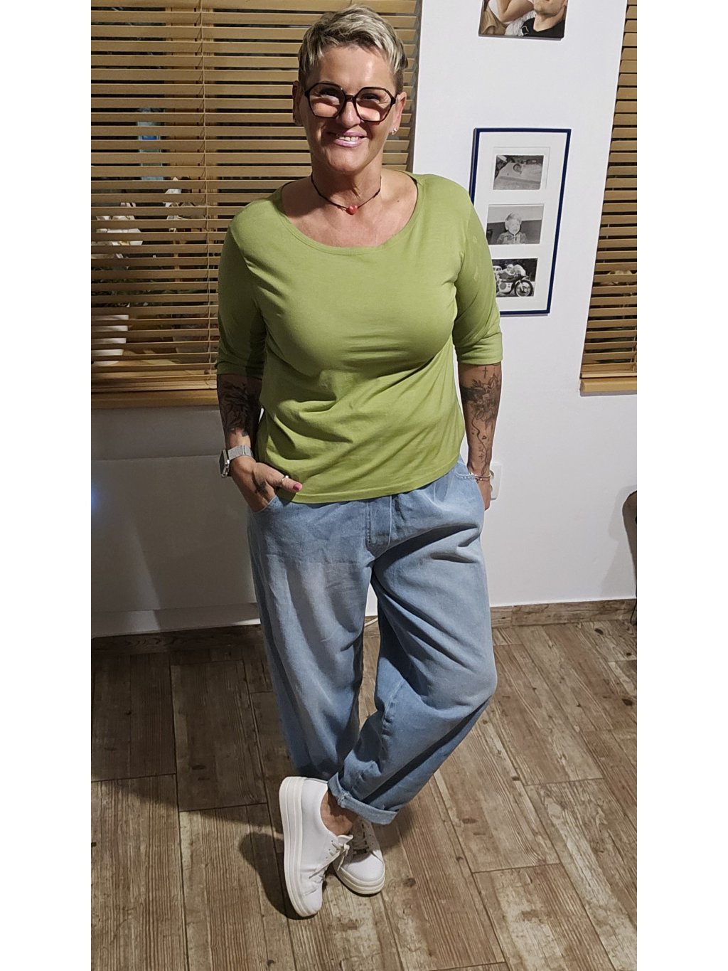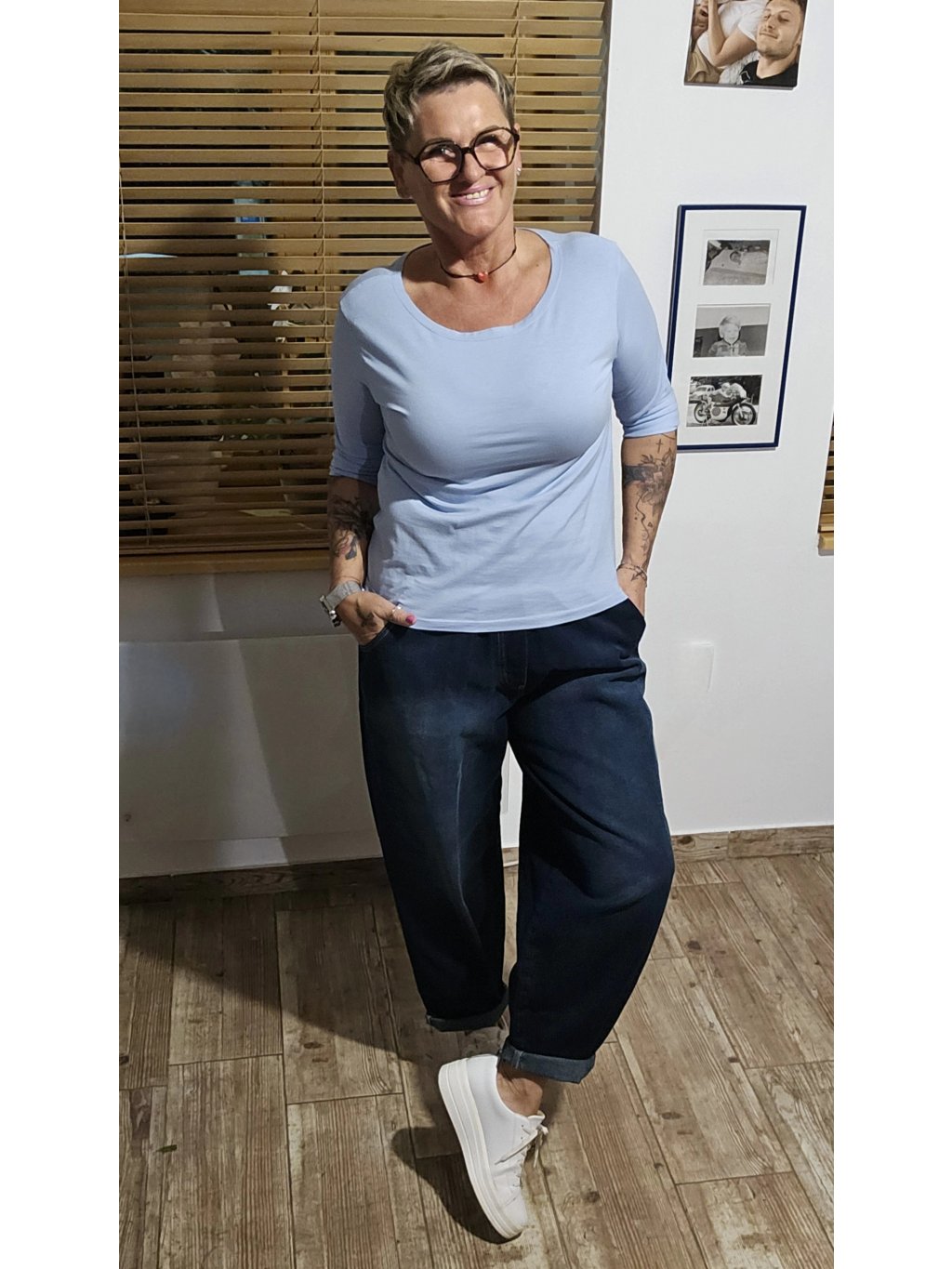 Příjemné bavlněné tričko s elastanem a 3/4 rukávem, které se přizpůsobí postavě, nikde netlačí a skvěle se kombinuje. Ideální basic kousek na každý den.