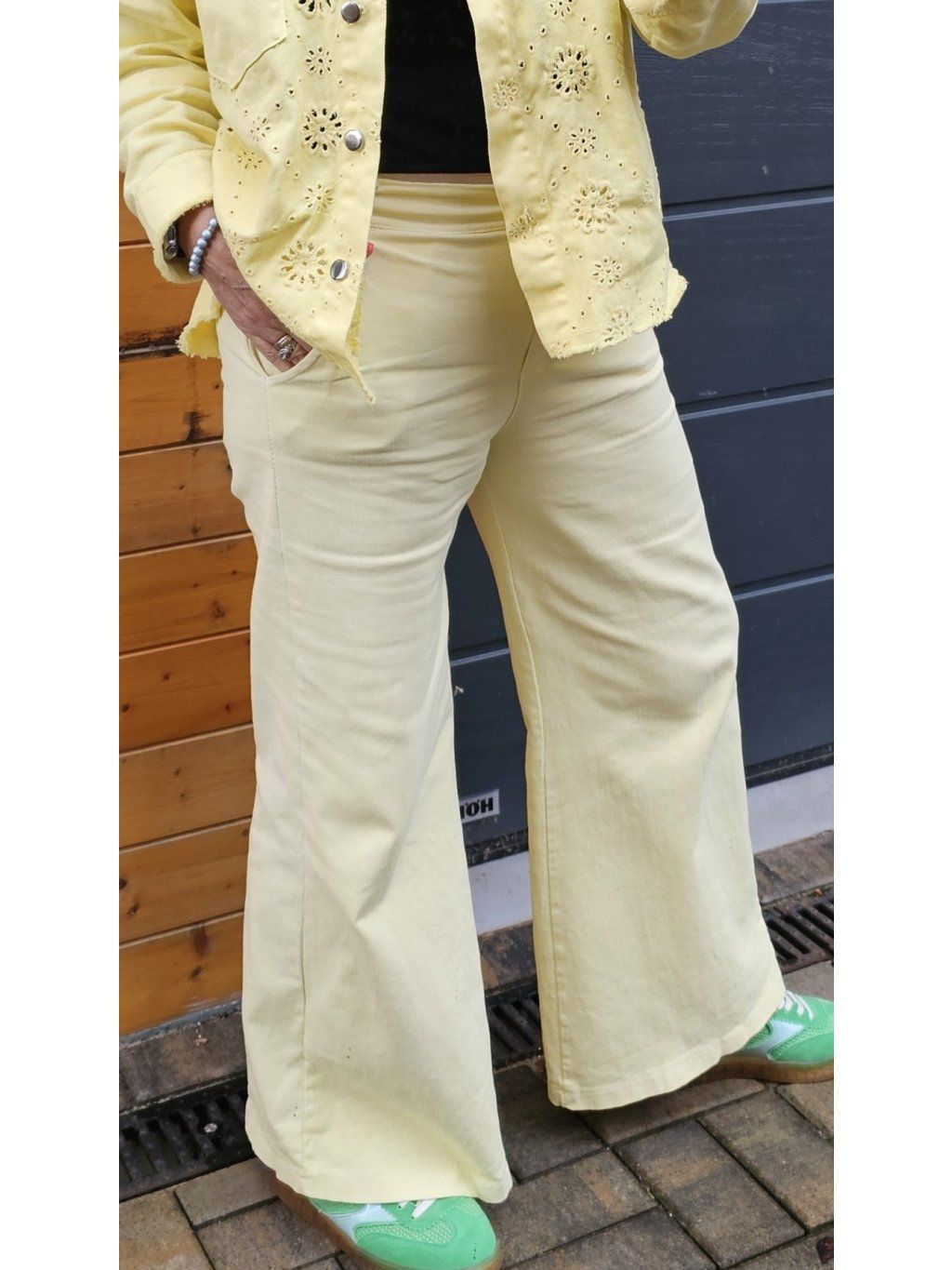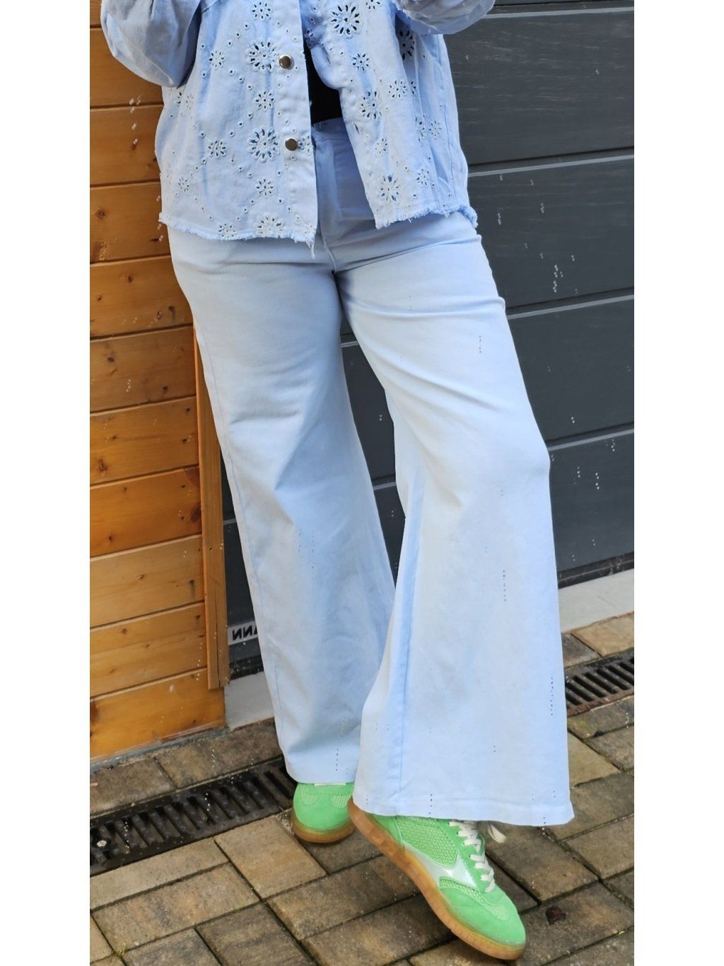 Zastrč do nich jednoduché tílko nebo tričko a doplň krátkou bundičkou či sakem. Pokud chceš nohy ještě víc opticky prodloužit, zvol boty v podobném tónu jako kalhoty. Pro odvážnější look klidně přidej výrazné tenisky – funguje to skvěle.