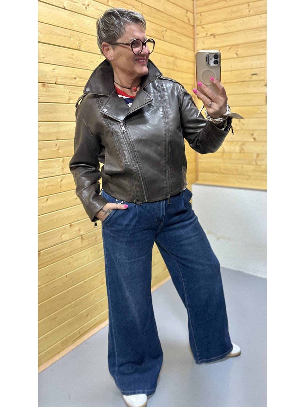 Stylový koženkový křivák v hnědém odstínu, který dodá každému outfitu šmrnc, odvahu a lehce rebelskou energii. Skvělý kousek na přechodové období i chladnější letní večery.