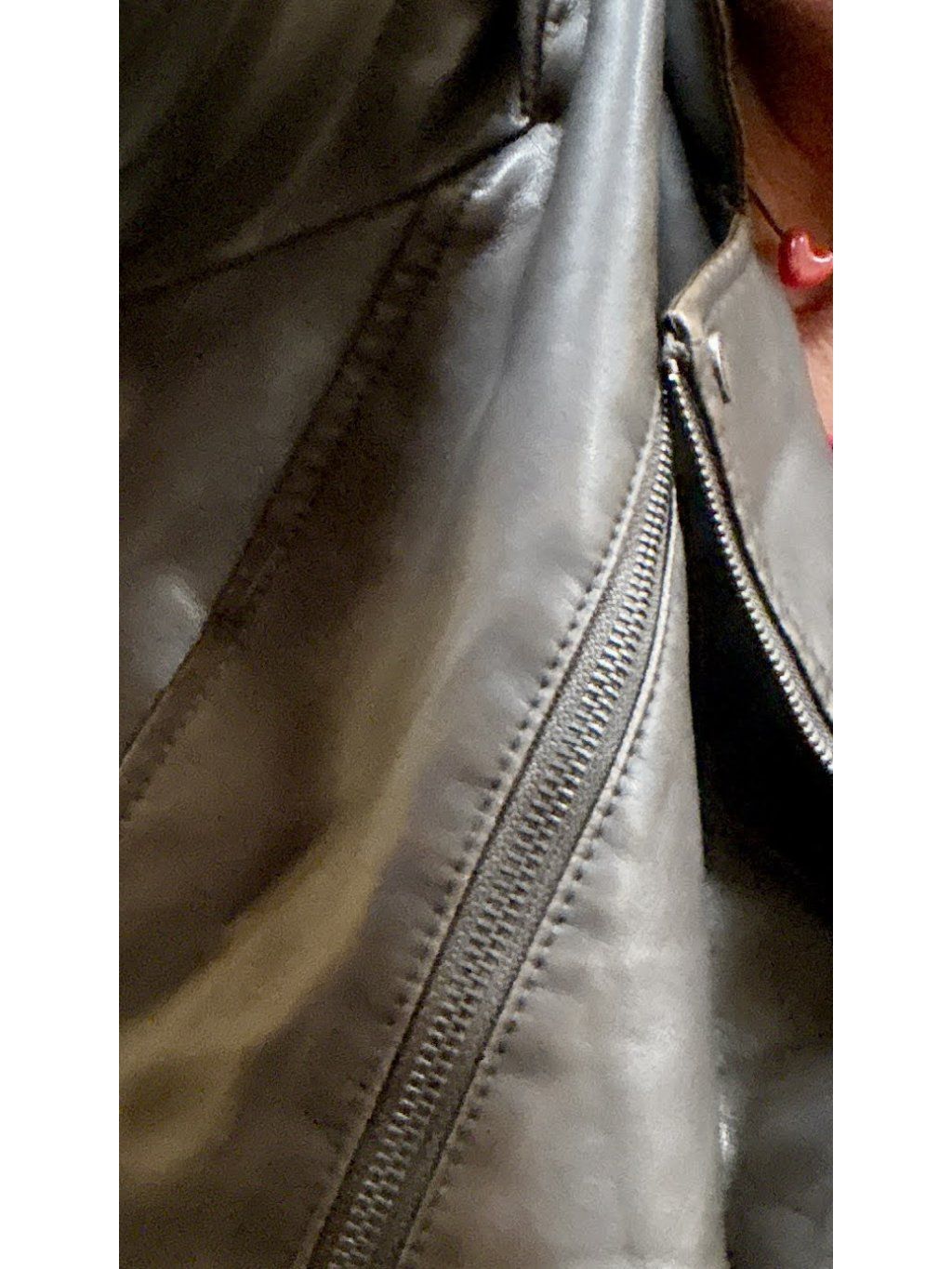 Koženkový materiál působí pevně, ale je příjemný na nošení. Bunda krásně drží tvar, přesto nepůsobí tvrdě. Velkým plusem jsou zipy na rukávech, díky kterým si můžeš rukáv dole rozšířit a přizpůsobit ho stylu i vrstvení.