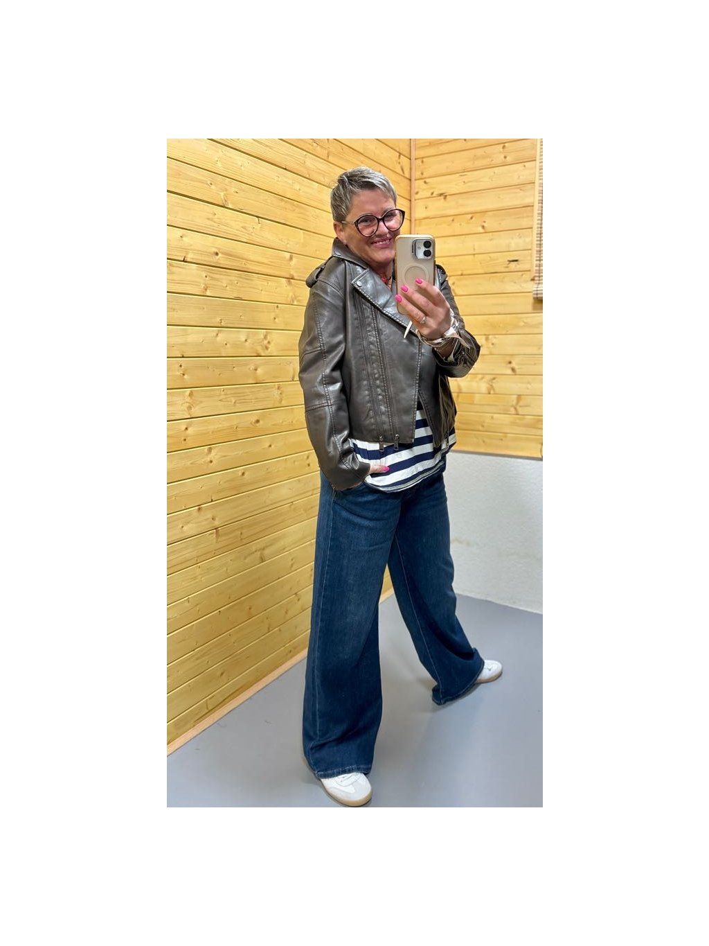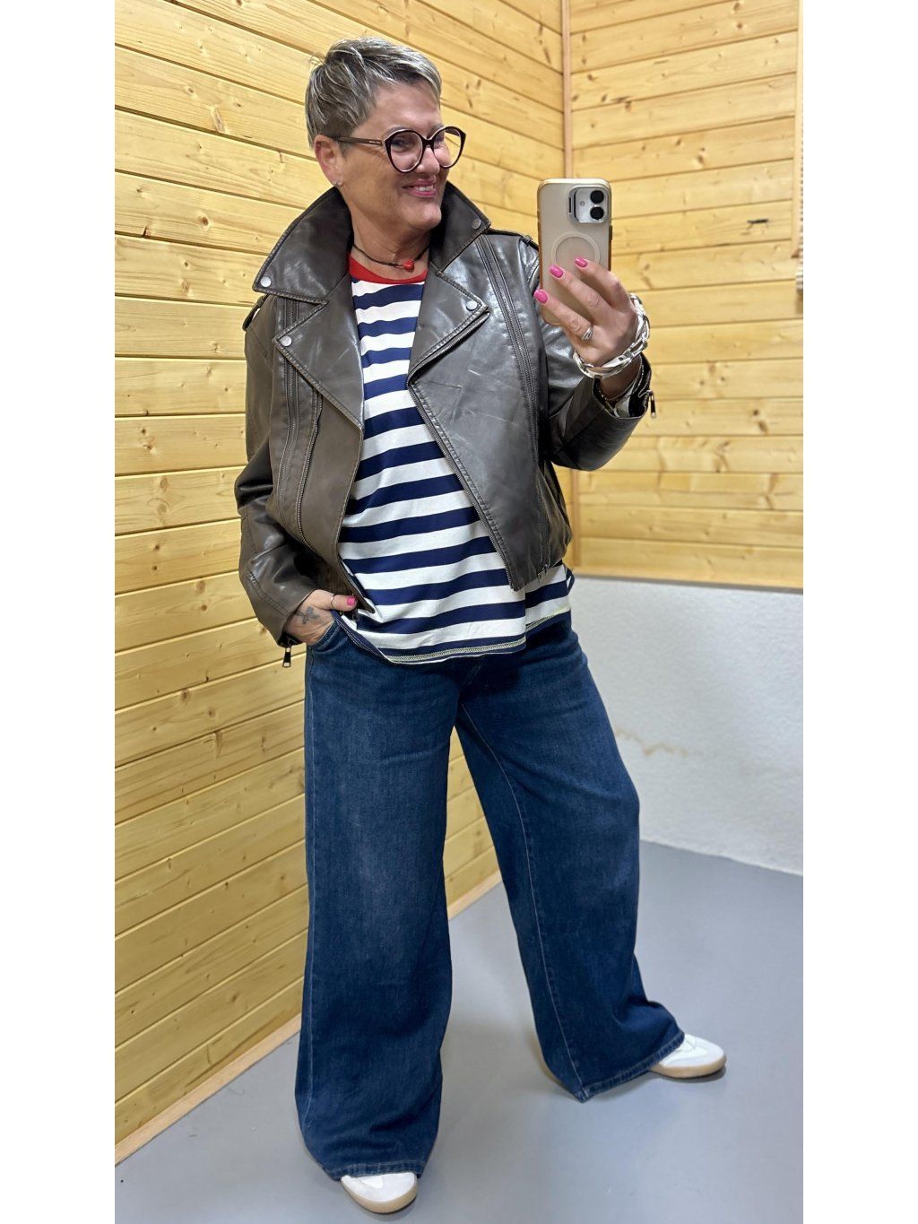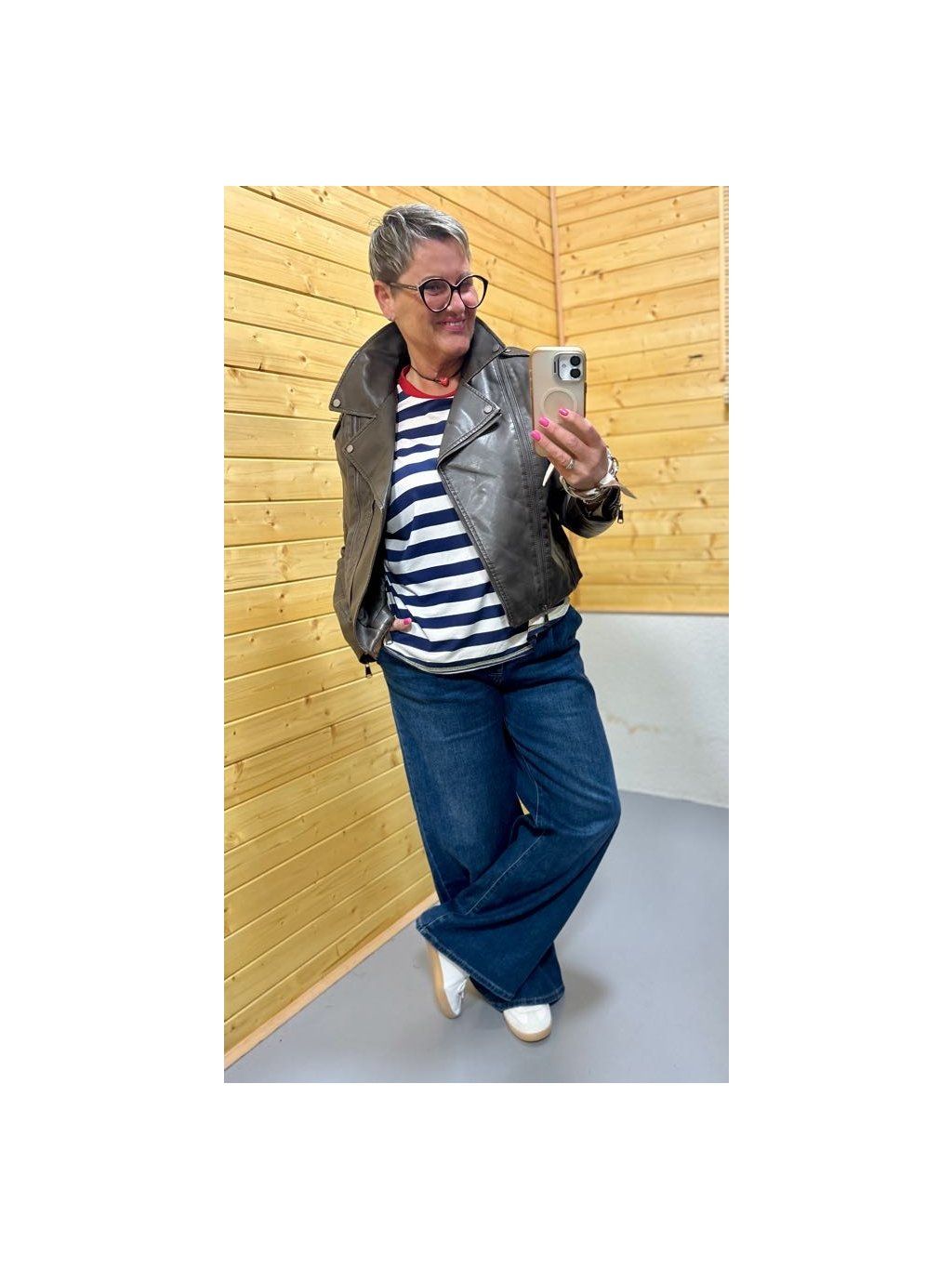 Noste s proužkovým tričkem, jednoduchým topem nebo šaty. Skvěle ladí k džínům, širokým kalhotám i sukním. Přidej tenisky pro ležérní styl nebo kotníkové boty pro víc rockový look.