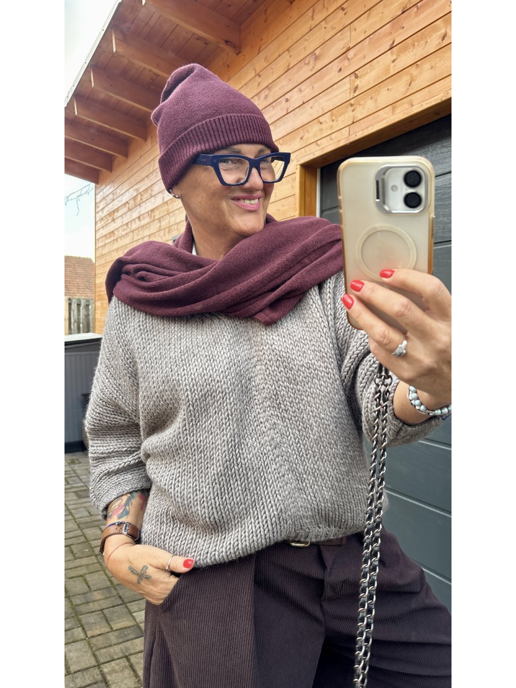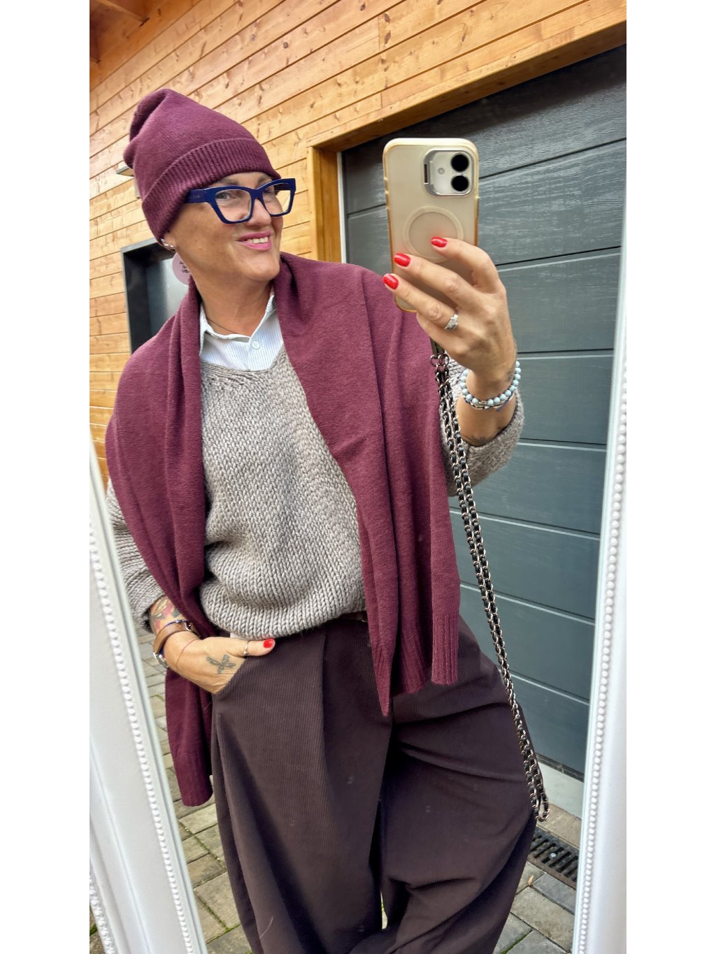 Vínová barva se už od dob starého Říma považovala za barvu síly a sebevědomí. Možná proto tak krásně podtrhne ženskou energii, když si ji přehodíš kolem krku. 💫