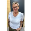 Minimalistický kousek, který si zamiluješ pro jeho jednoduchost a chytrý detail. Výstřih do V je decentně lemovaný stříbrnou nití, která triku dodává jemný lesk a ženskost, aniž by působil výrazně nebo přehnaně.