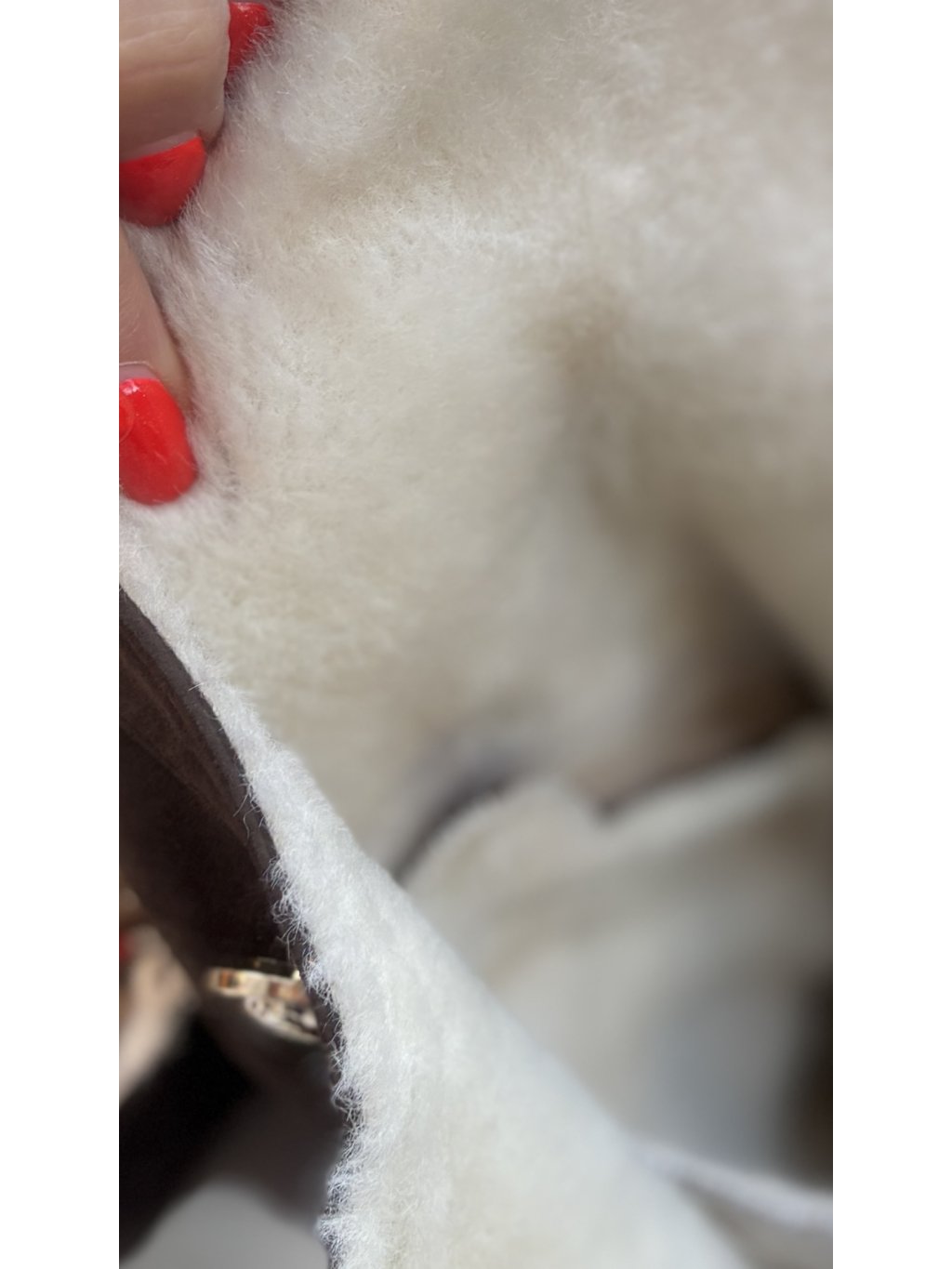 Tenhle kabátek je malý luxusní drak do zimy. Čokoládová hnědá působí elegantně a teple, krémový kožíšek uvnitř je mega příjemný na tělo a dělá přesně ten kontrast, co vypadá „wow“ i na obyč outfitu.