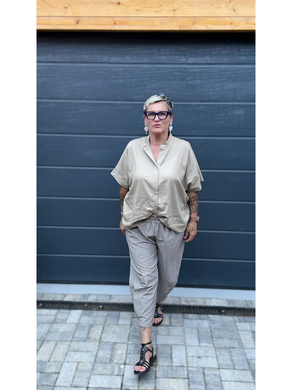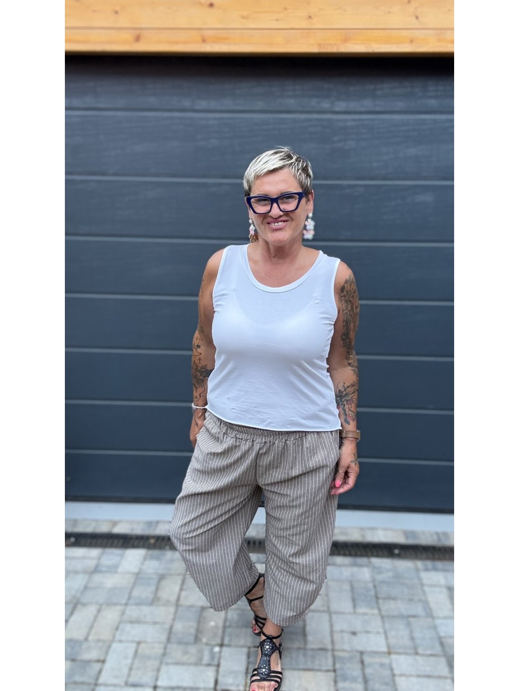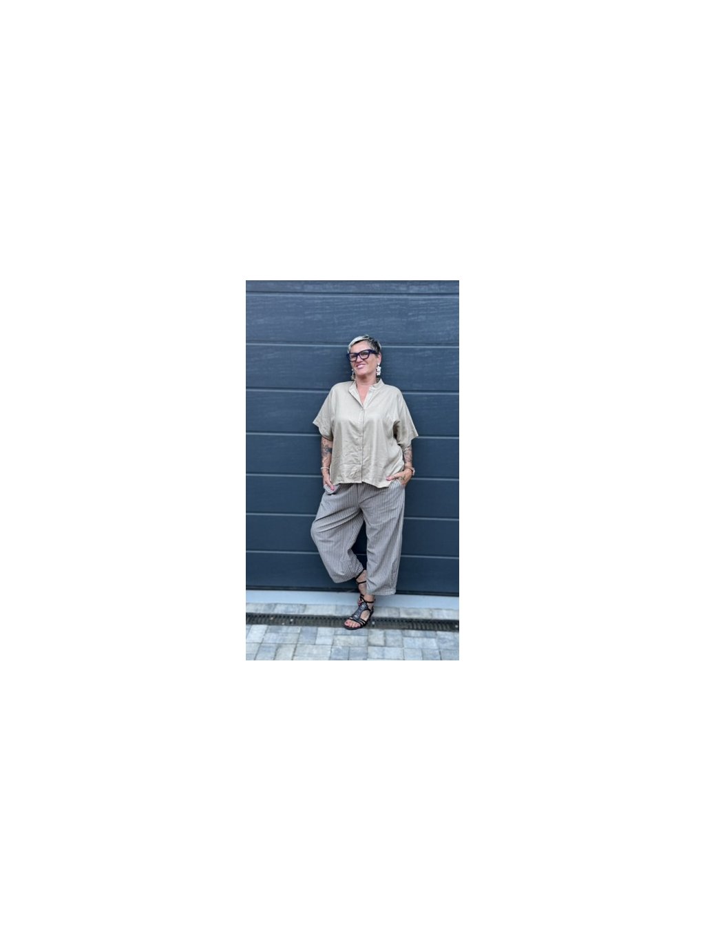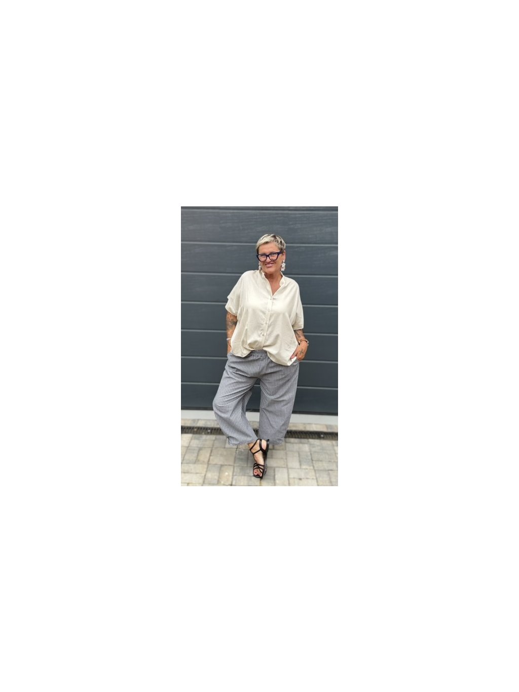 Kalhoty, které v sobě spojují ležérní eleganci a praktické pohodlí. Mají zajímavý střih se skladem na přední části nohavic, který vytváří jemný balónový efekt. Díky jemnému proužku působí opticky prodlužujícím dojmem a hodí se ke každé postavě. V pase jsou na gumu, takže se krásně přizpůsobí a pohodlně nosí celý den. Dostupné ve třech decentních barvách – hnědé, šedé a námořnické modré – vždy s bílým proužkem. Skvělý základ pro vrstvení i výraznější topy!