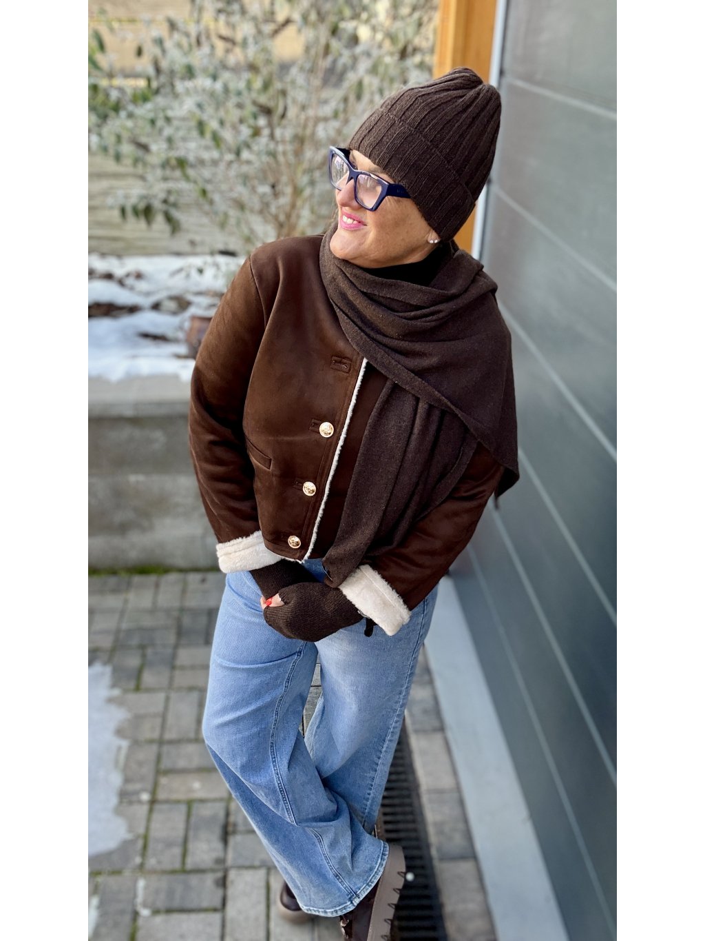 Nejvíc ji miluju s velkým šátkem a brýlemi – instantní „cool paní z města“.