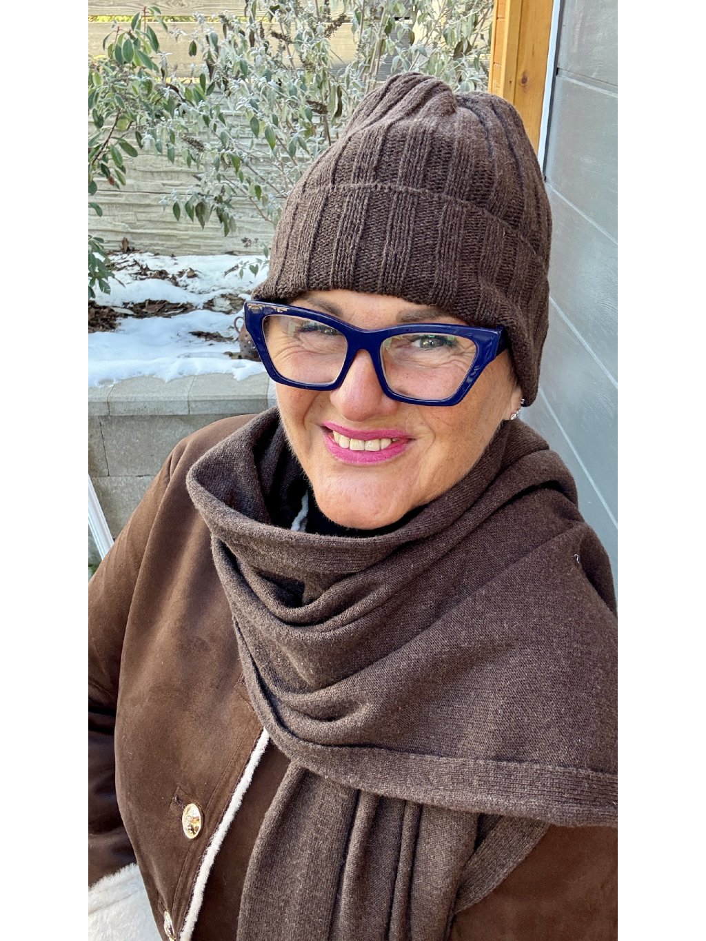 Pletenina je příjemně pružná, drží tvar, nepadá do očí a krásně obejme hlavu. Široký ohrnovací lem dělá hezký rám obličeje a zároveň zahřeje uši.