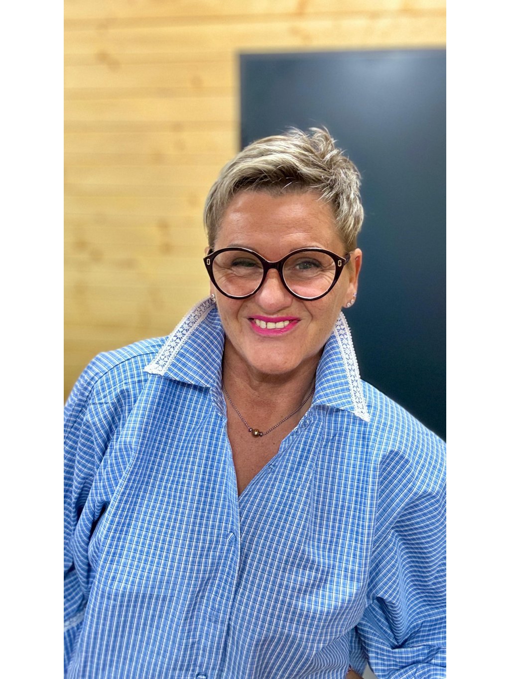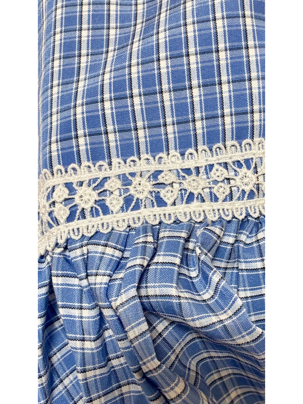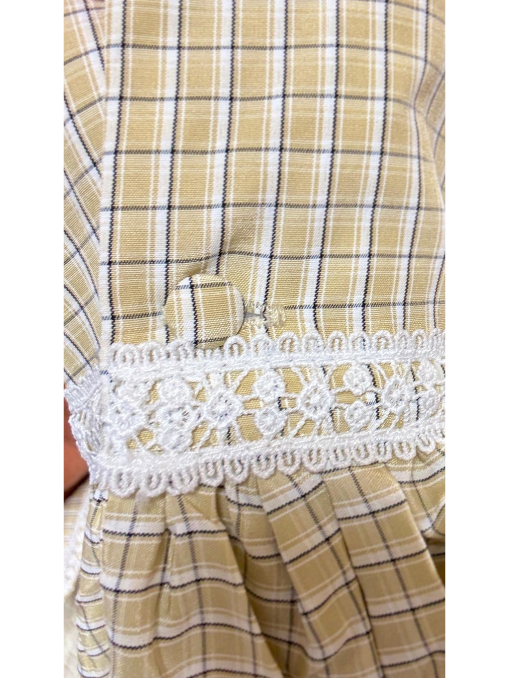 Jemná krajka na límečku a rukávech dodává košili ženskost a lehkou romantiku, aniž by působila přezdobeně. Velkou pozornost si zaslouží také knoflíky potažené stejnou látkou, které najdete jak na zapínání, tak na manžetách – detail, který dělá celek opravdu krásným.