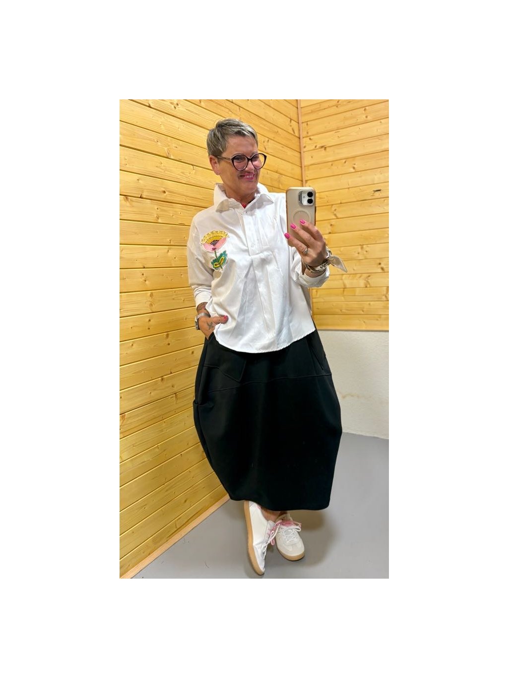 Tato košile je přesně pro ženy, které mají rády jednoduchý základ, ale chtějí v outfitu něco navíc. Klasický košilový střih je doplněný o výraznou, působící výšivku květiny, která z ní dělá nepřehlédnutelný kousek.