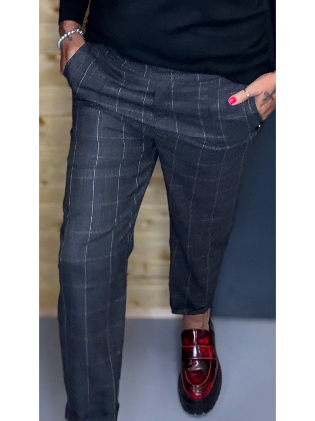 Elegantní a zároveň pohodlné kostkované kalhoty ve dvou barvách – šedé a tmavě modré. Mají moderní střih, ozdobné knoflíky u kapes a elastický pas pro pohodlné nošení.