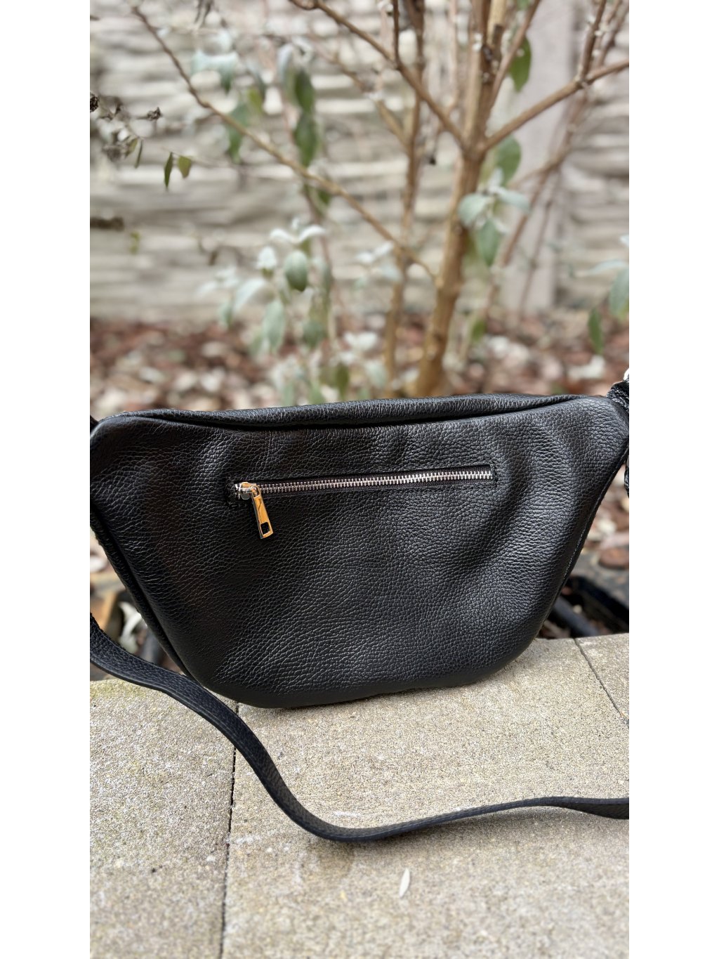 Díky svému tvaru se skvěle přizpůsobí tělu – můžeš ji nosit přes rameno, crossbody nebo klasicky kolem pasu. Hlavní prostor je uzavíratelný kvalitním kovovým zipem, doplněný o zadní zipovou kapsu na drobnosti, které chceš mít bezpečně u sebe.