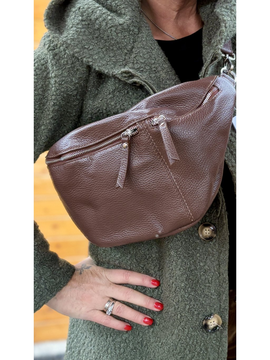 Stylová kožená ledvinka z pravé italské kůže, která se nosí s lehkostí a sebevědomím. Praktická, nadčasová a neuvěřitelně pohodlná – přesně ten typ kabelky, kterou nechceš sundat.