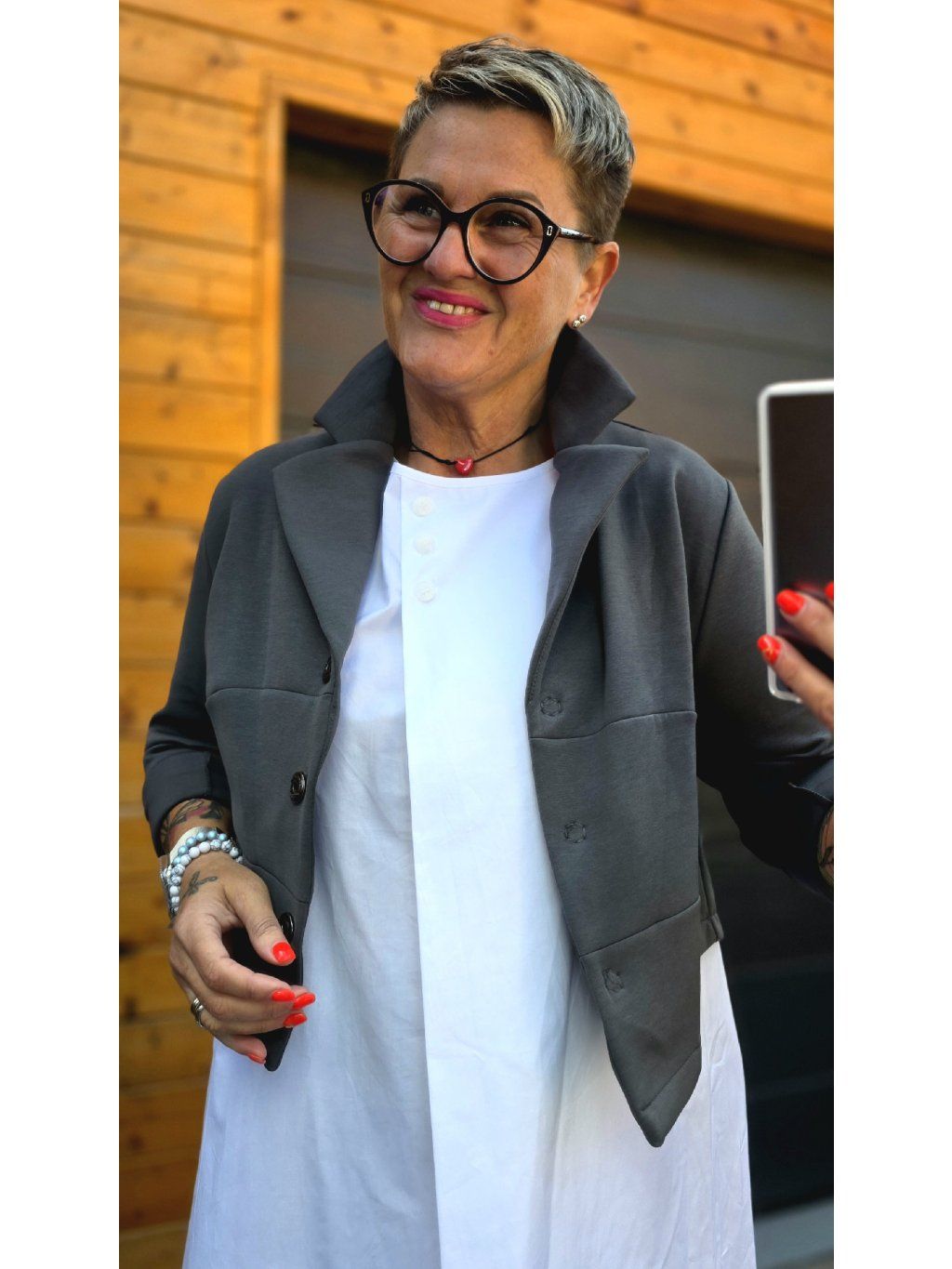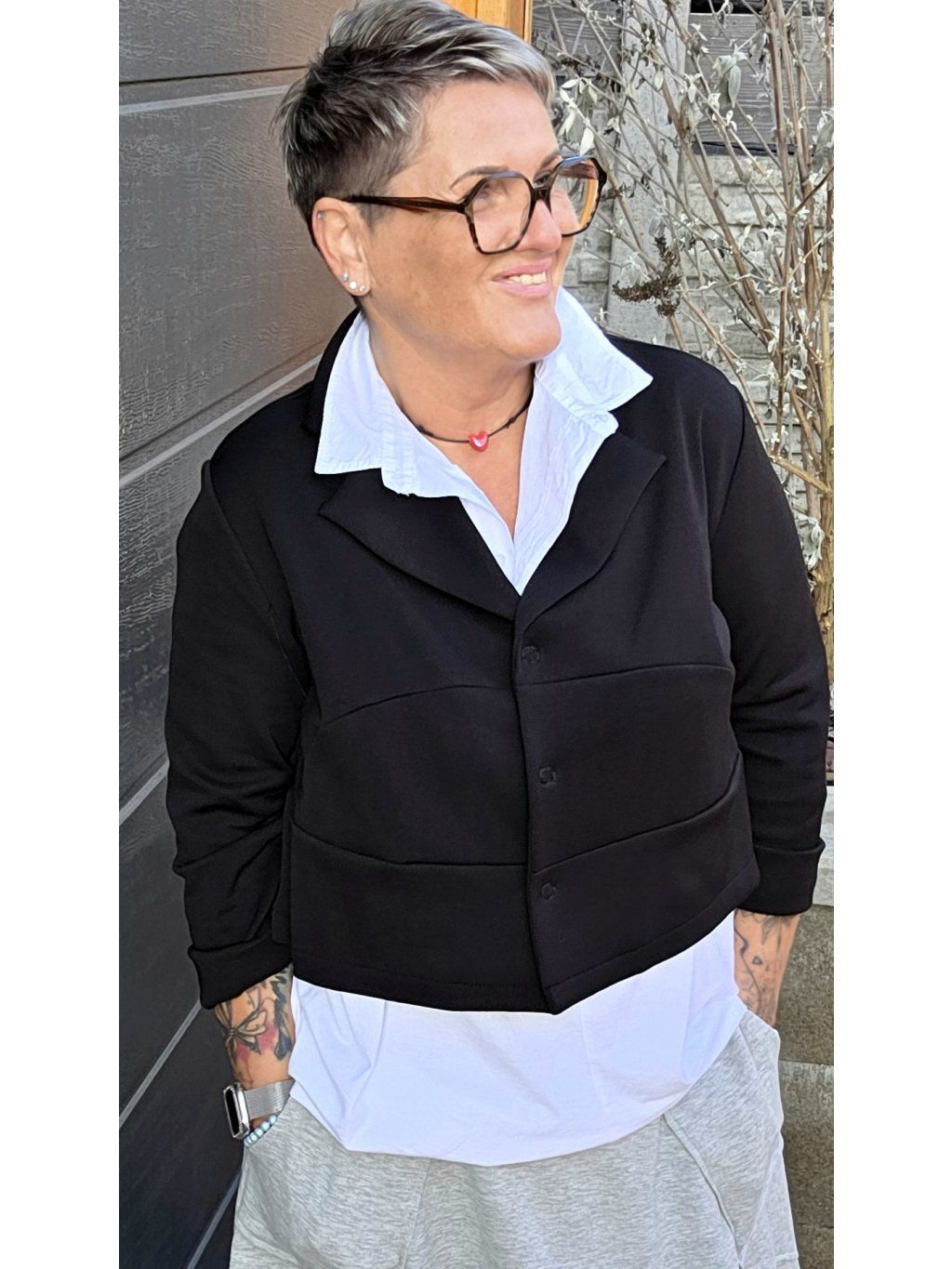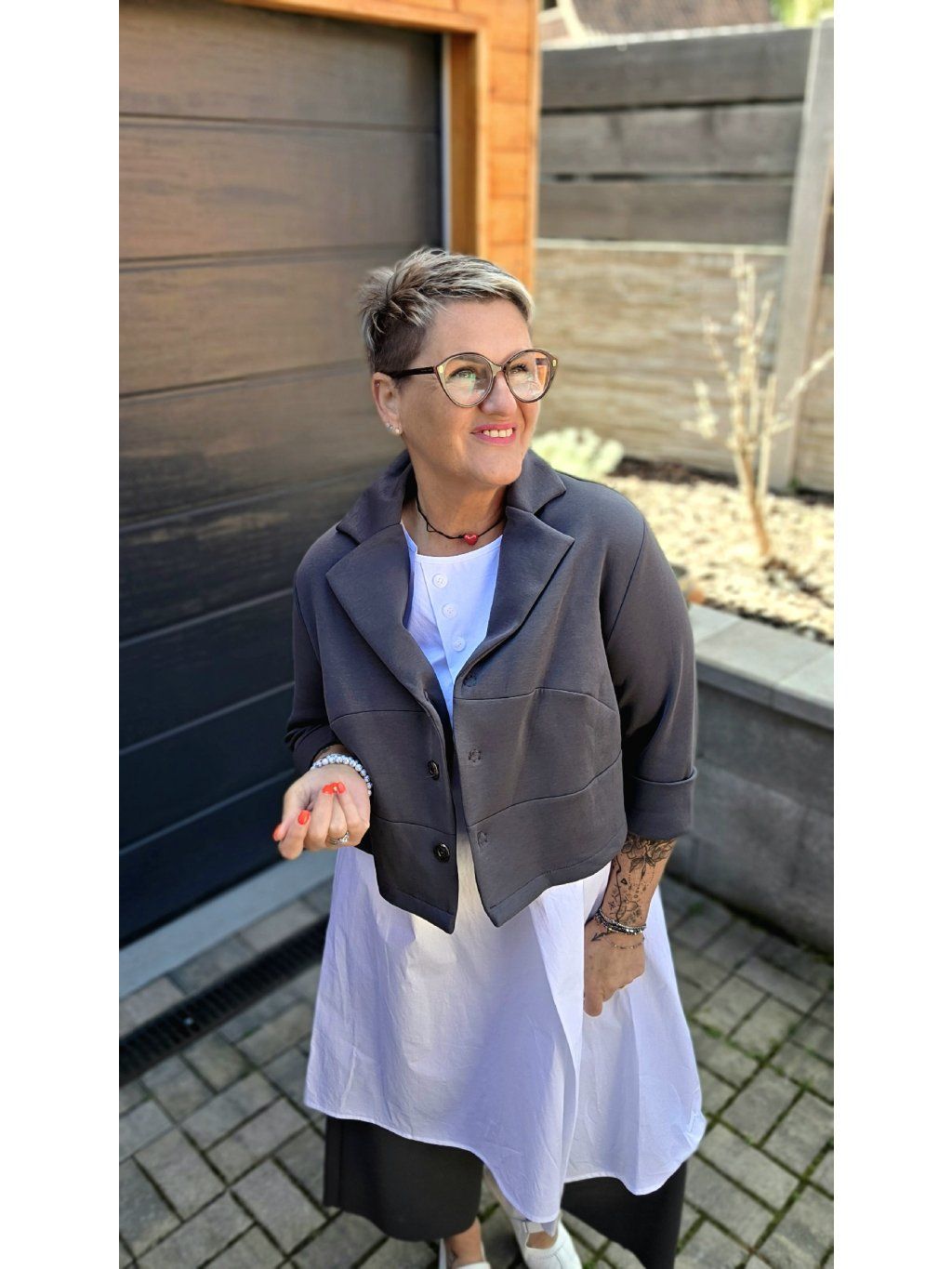 Moderní krátké sako se zapínáním na 3 patentky a ozdobným prošíváním. Stylový kousek, který podtrhne siluetu a dodá outfitu šmrnc.