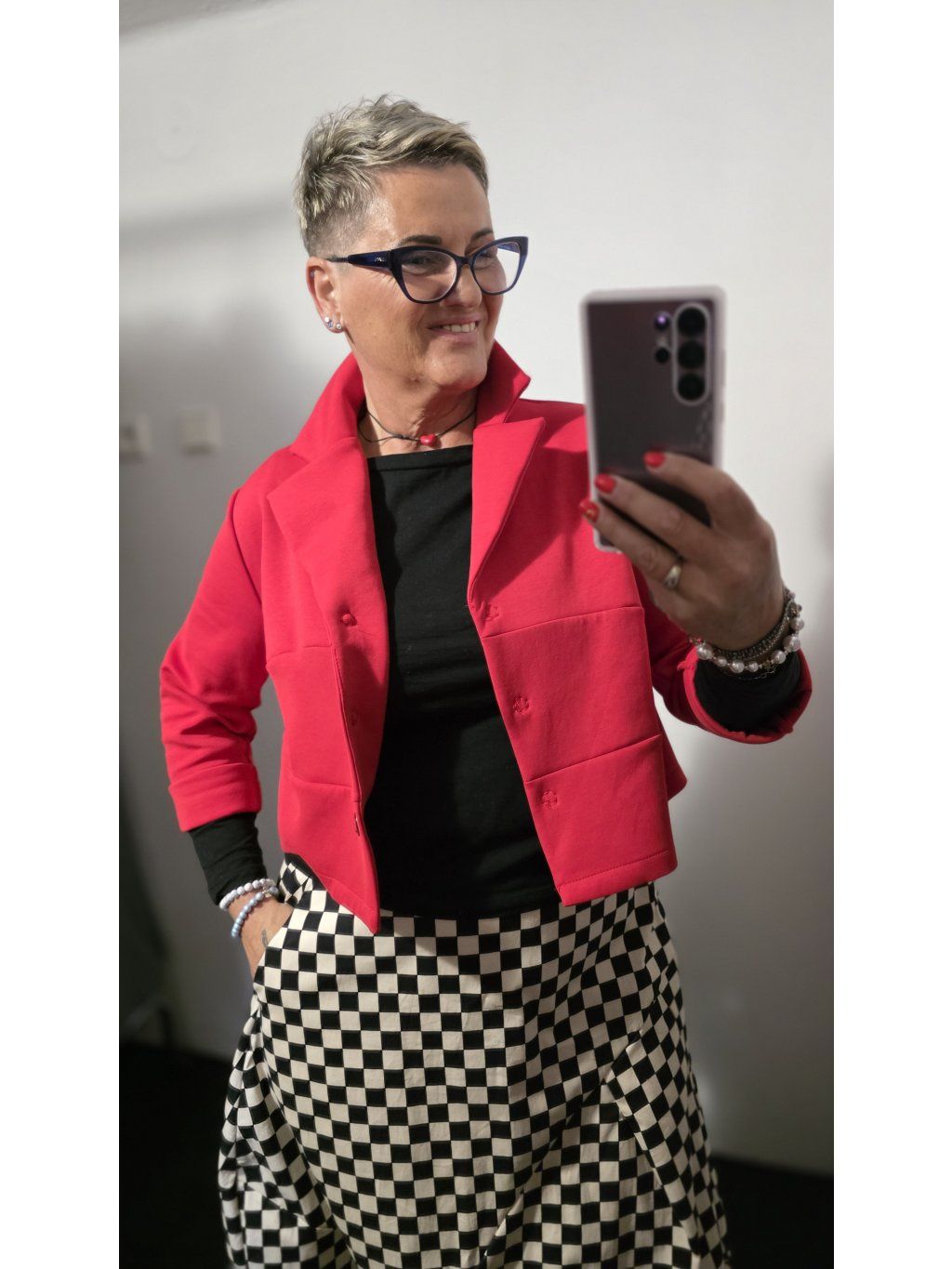 Krátké sako, které okamžitě zvýrazní pas a vytvoří moderní, svěží siluetu.