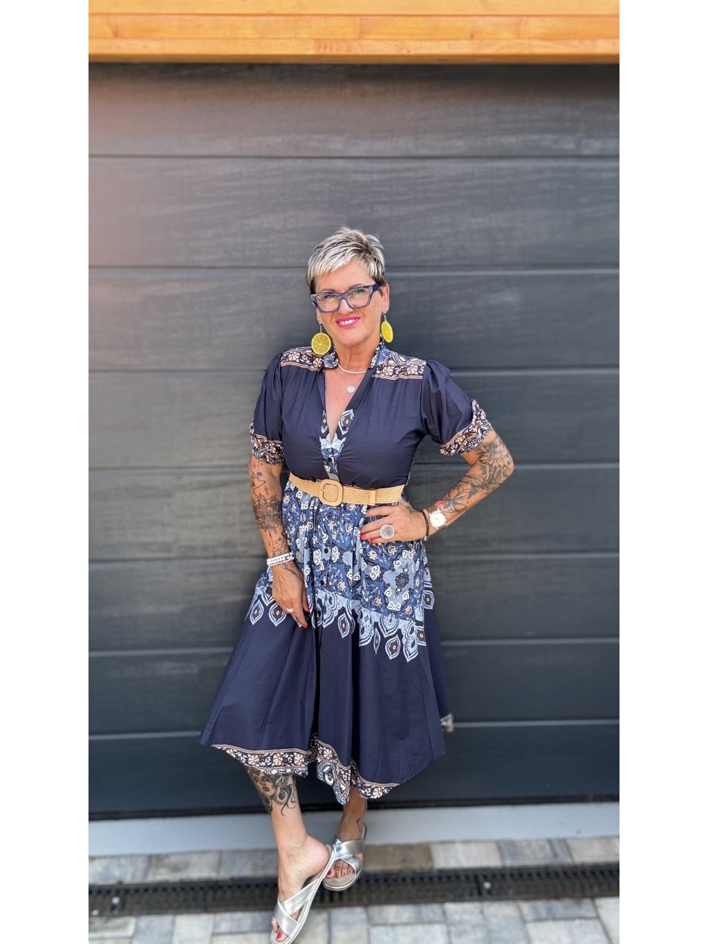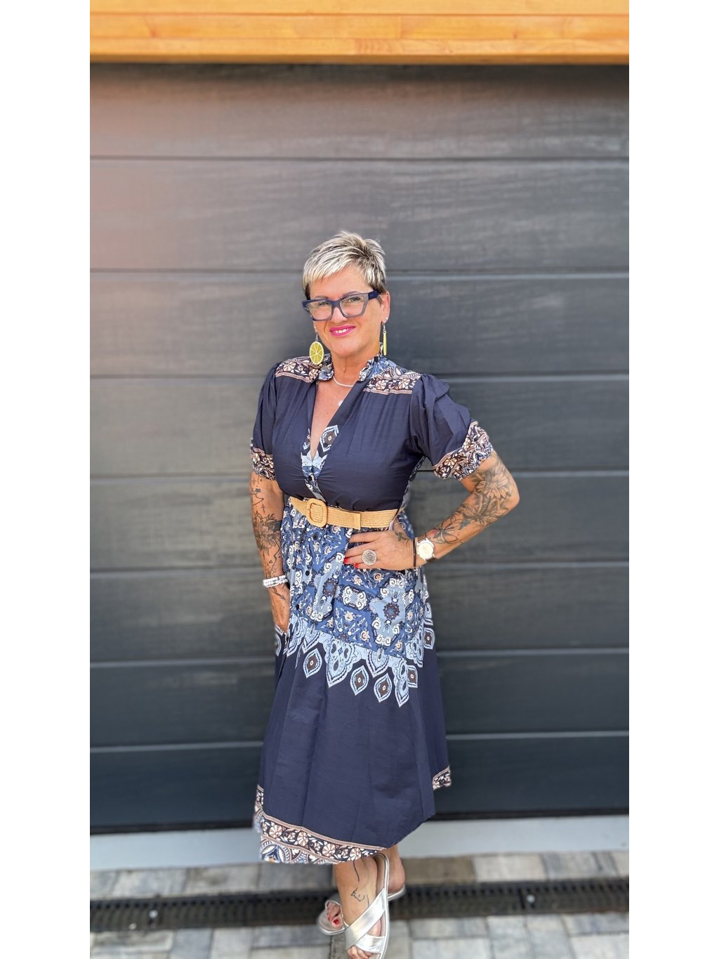 Šaty, ve kterých je léto ještě letnější! Dva nádherné vzory – modré s etnickým ornamentem nebo zelené s květinovým motivem. V pase zvýrazněné páskem, s kapsami a ženským střihem.