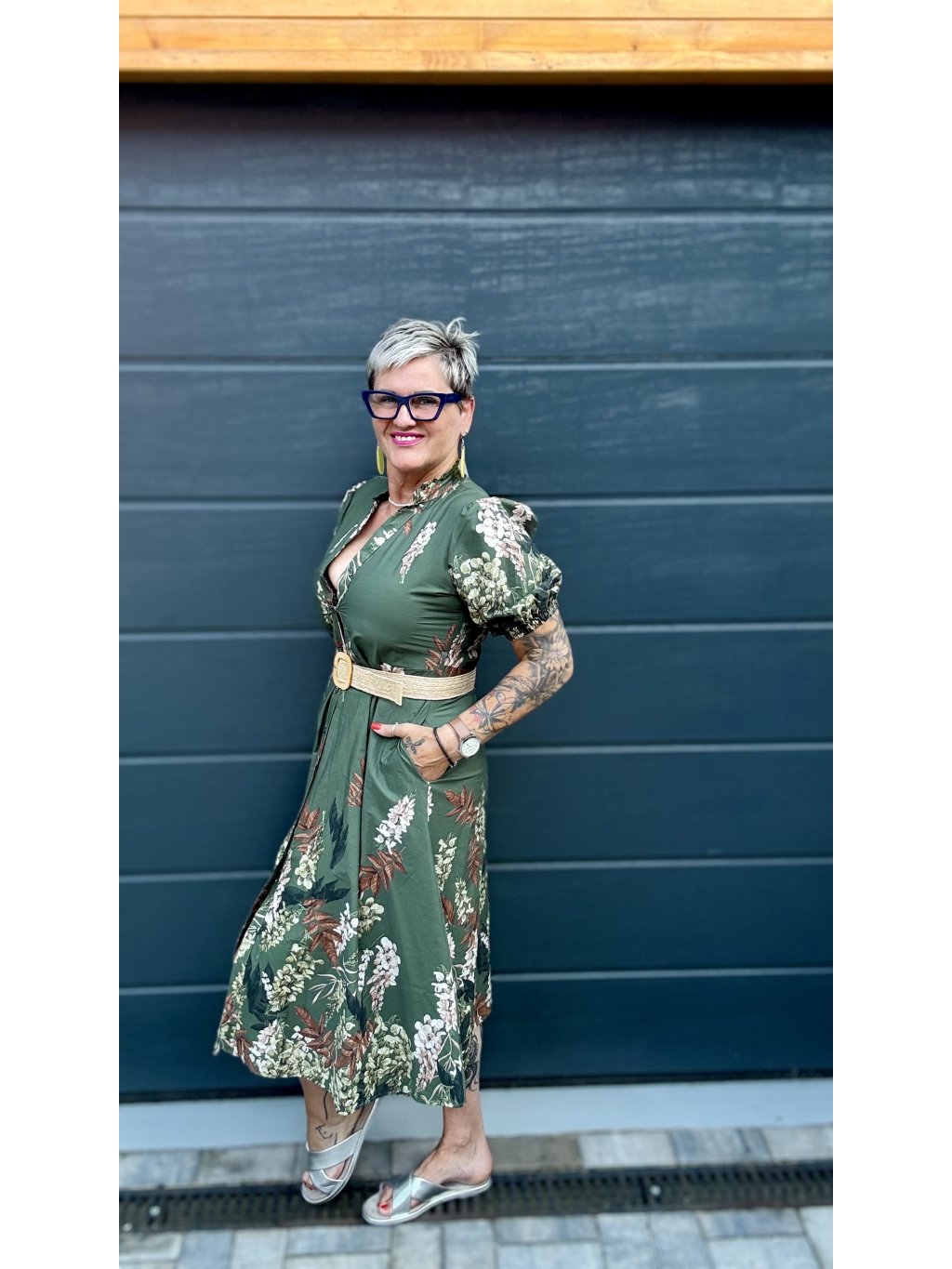 – nebo v khaki odstínu se stylovým květinovým potiskem v zemitých barvách.
