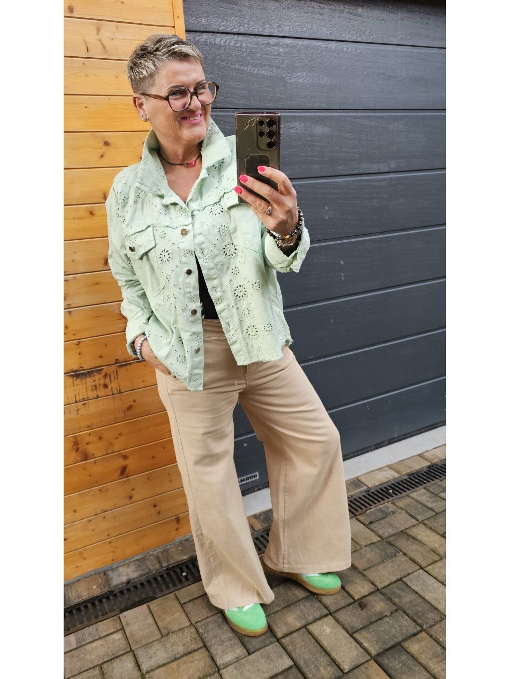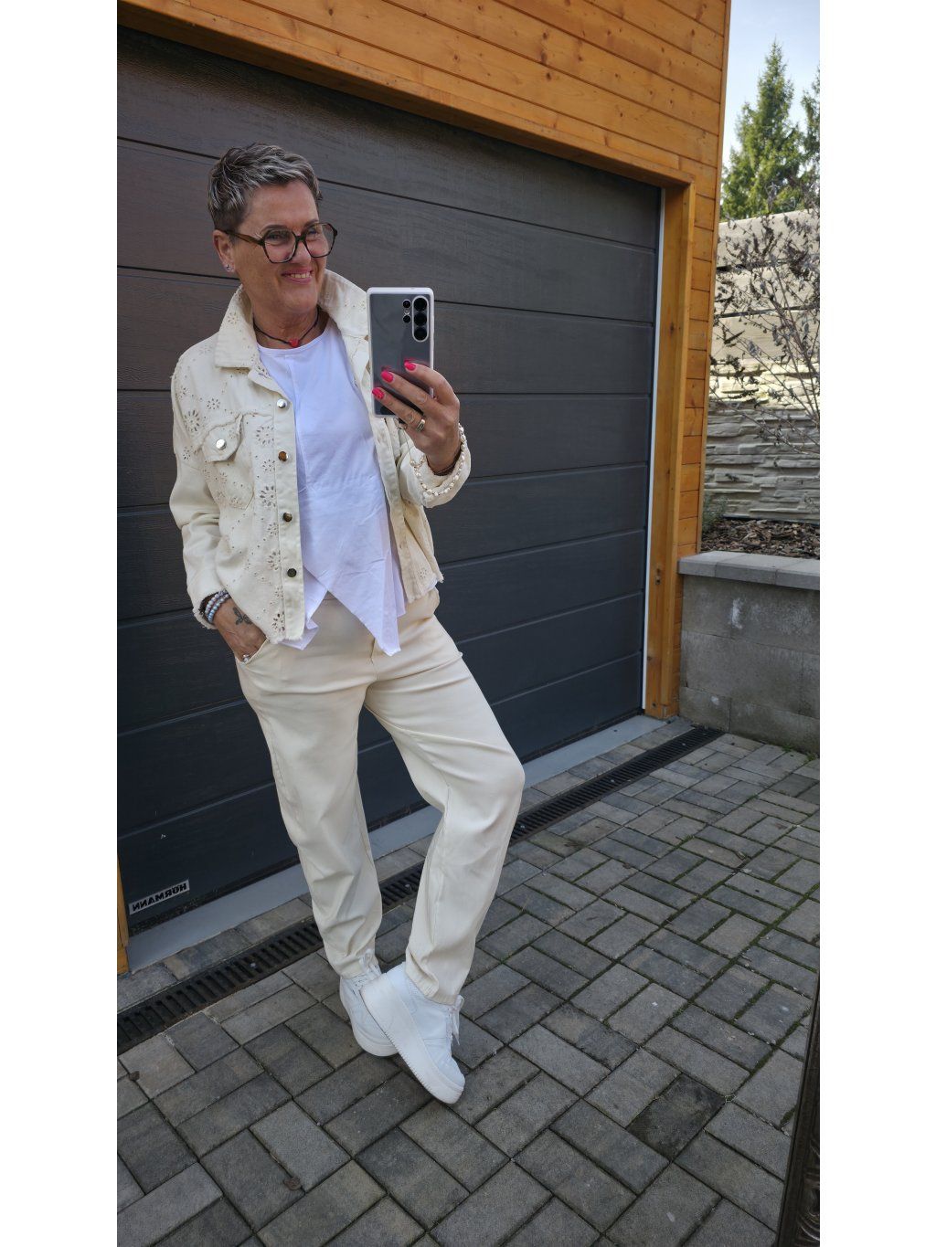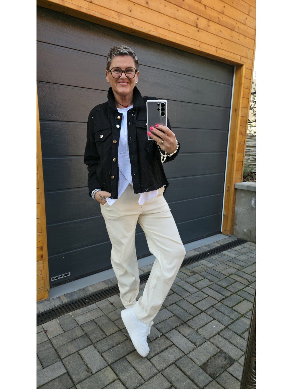 Perfektně ladí s elastickými širokými jeans, jednoduchým černým topem nebo světlými kalhotami pro svěží jarní look. Funguje i jako jemný kontrast k elegantnějším kouskům.
