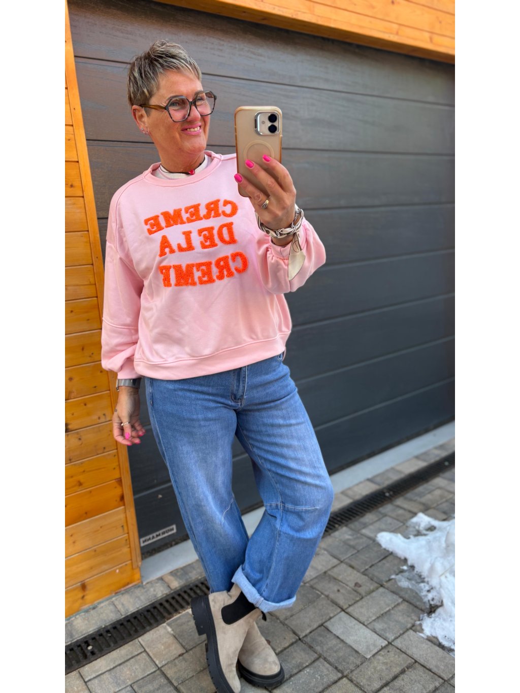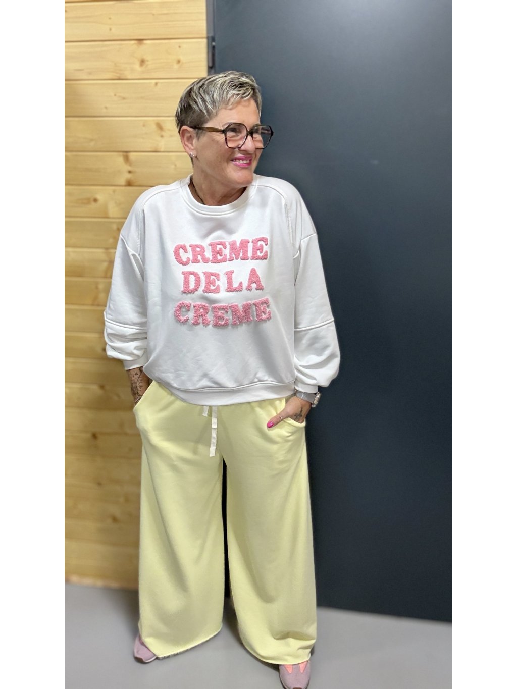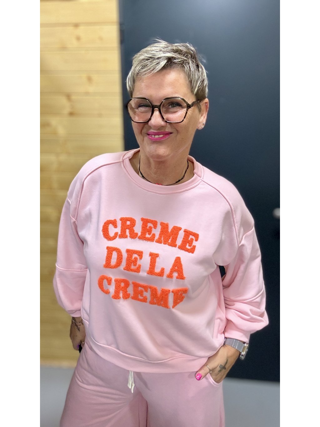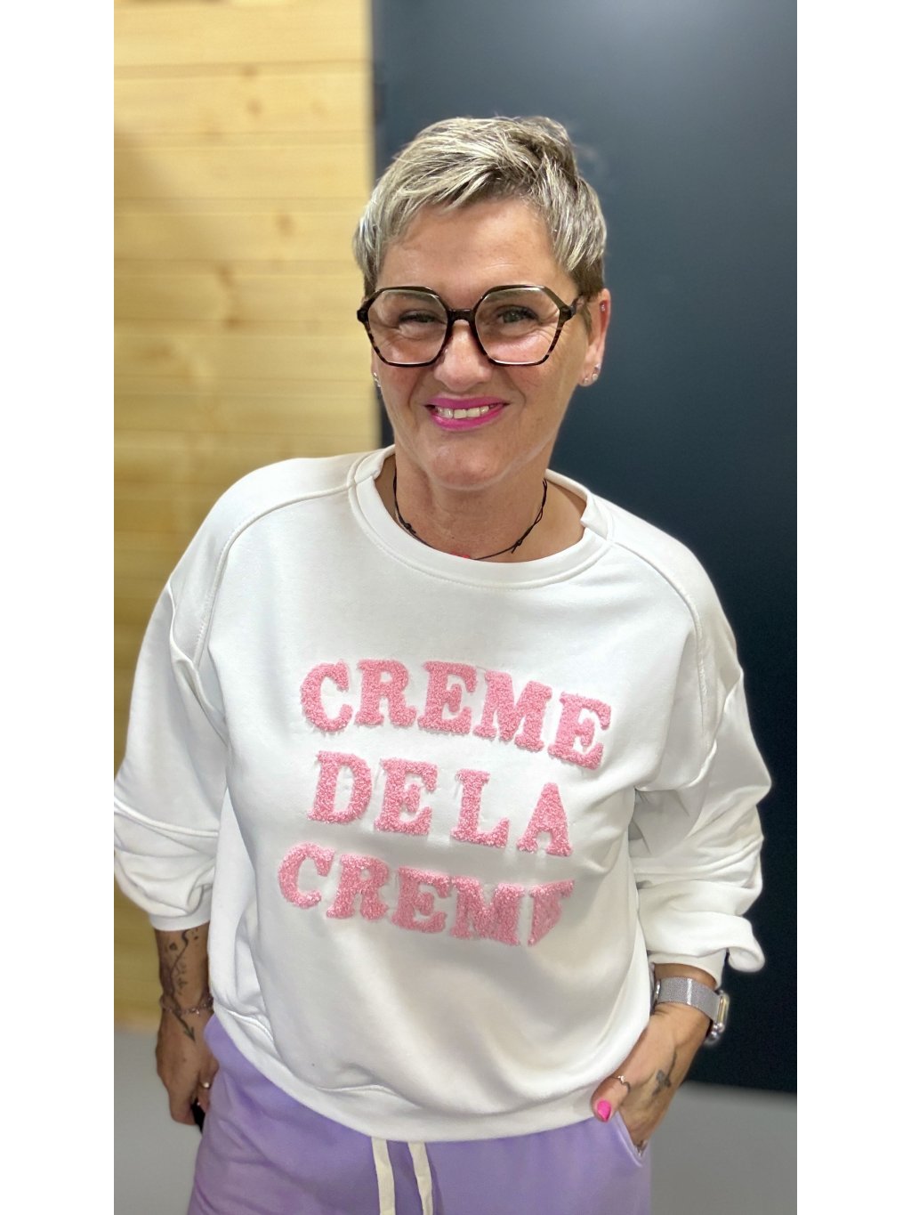 Stylová mikina s výrazným plastickým nápisem CREME DE LA CREME, která dodá outfitu šmrnc a pohodlí v jednom. Volnější střih, měkký materiál a lehce prodloužený zadní díl.