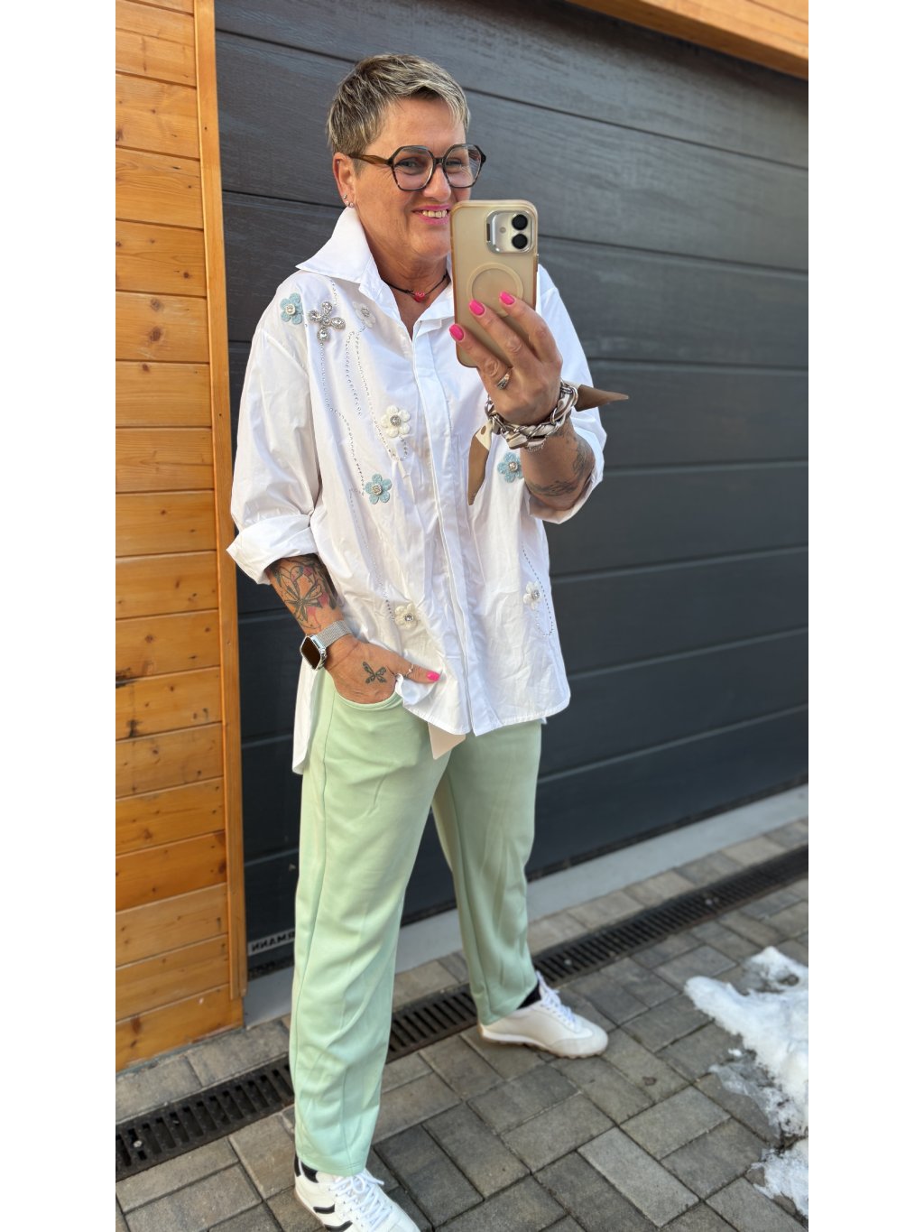 Kombinuj s košilí, halenkou i obyčejným tričkem. Skvěle vypadají s teniskami, mokasínami i sandálky. Ohrnuté nohavice dodají outfitu ležérní šmrnc, narovnané působí elegantněji.