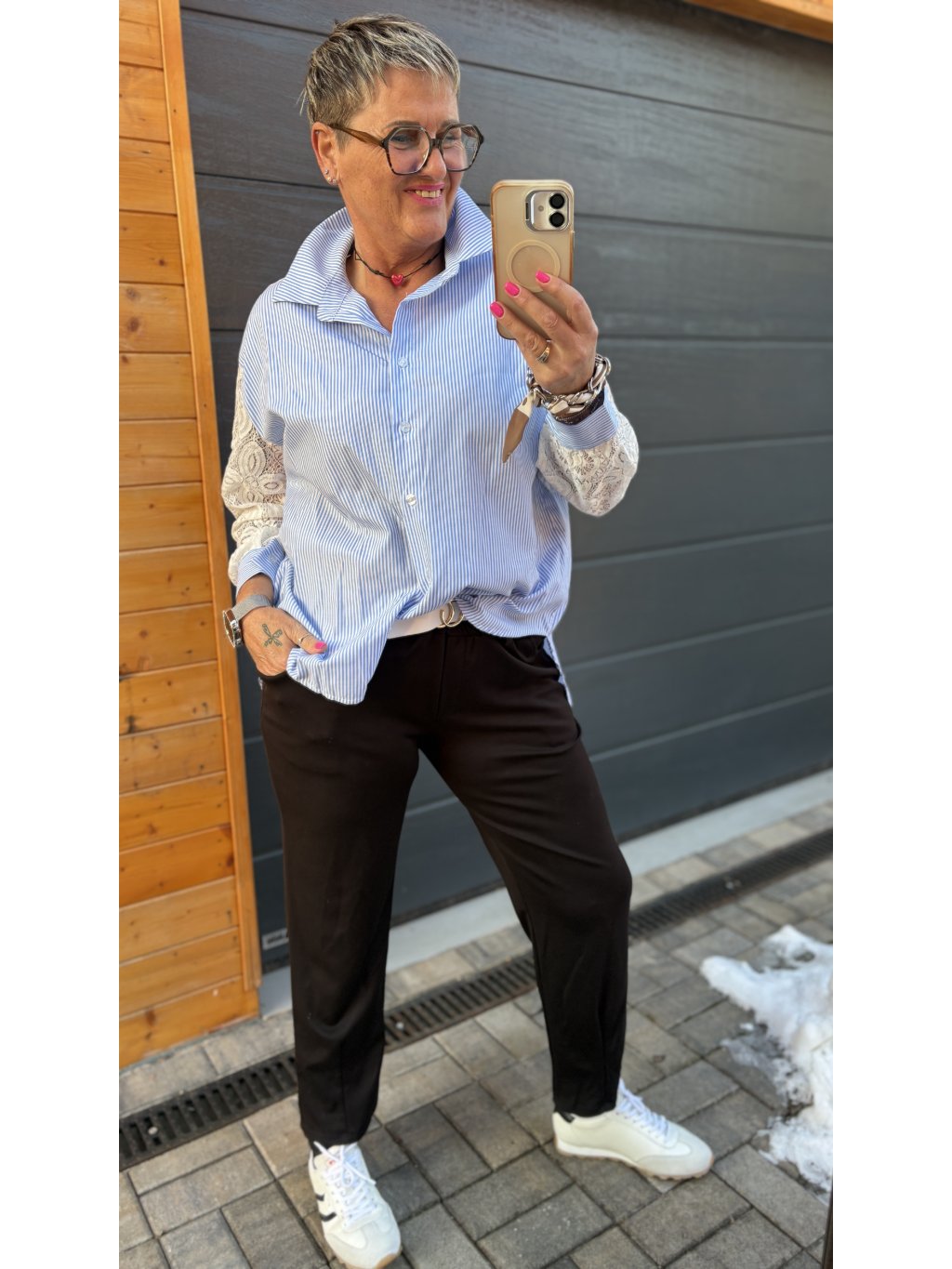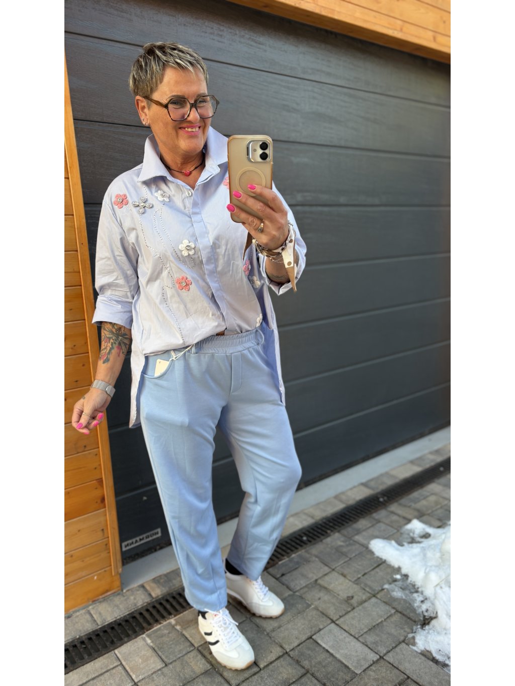 Díky falešnému poklopci vypadají kalhoty upraveně, ale pocitově jsou stejně pohodlné jako tepláky – ideální kompromis mezi stylem a komfortem.