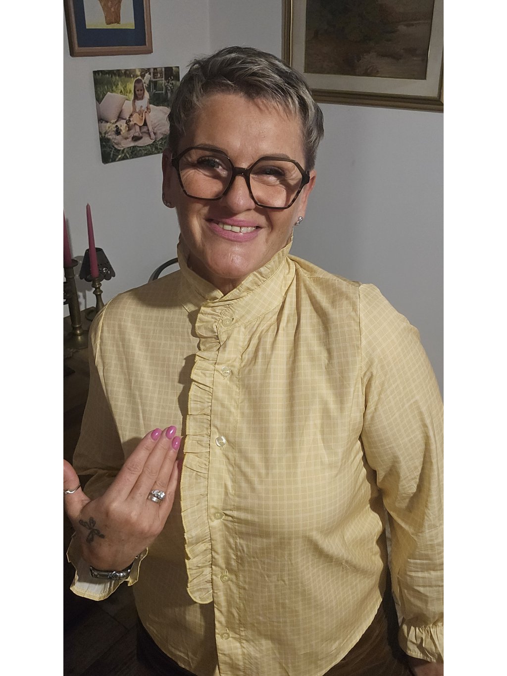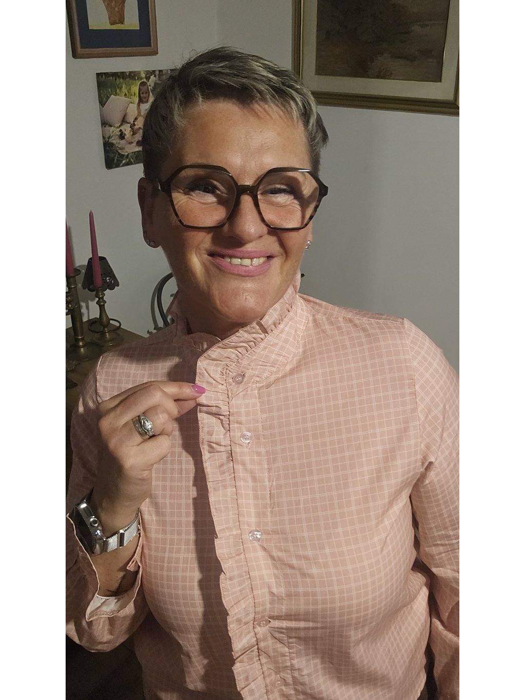 Volánek na košili je takový malý módní trik – udělá romantický efekt i bez šperků a outfit působí „vymakaně“, i když jsi to oblékla za 10 vteřin 😄✨