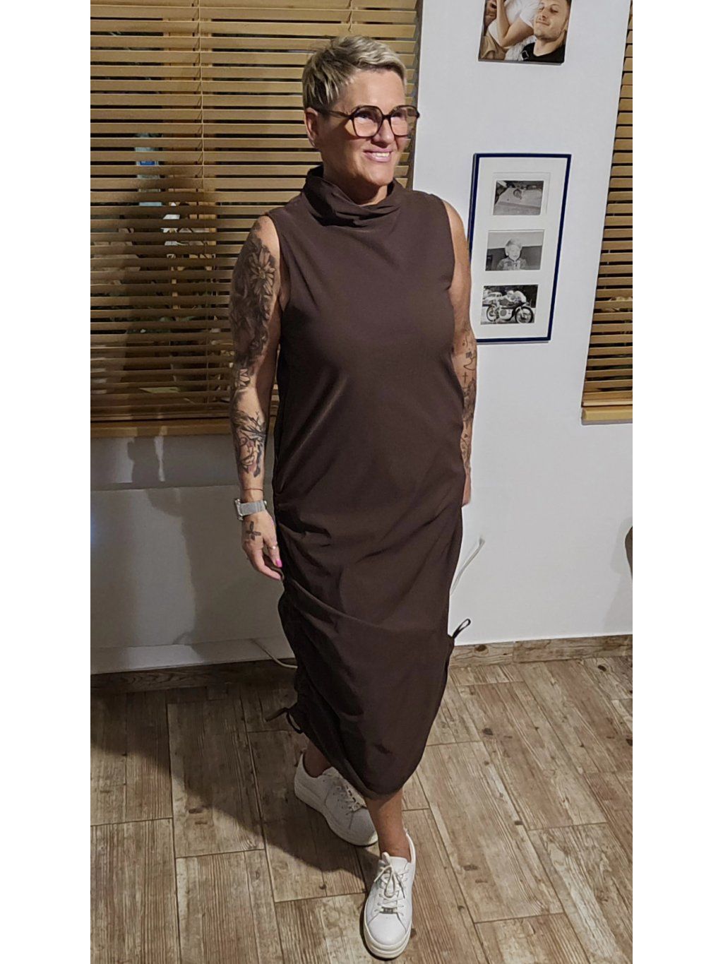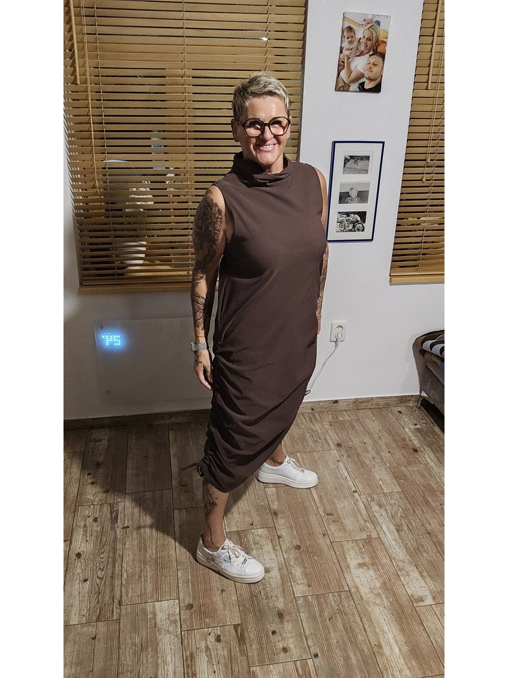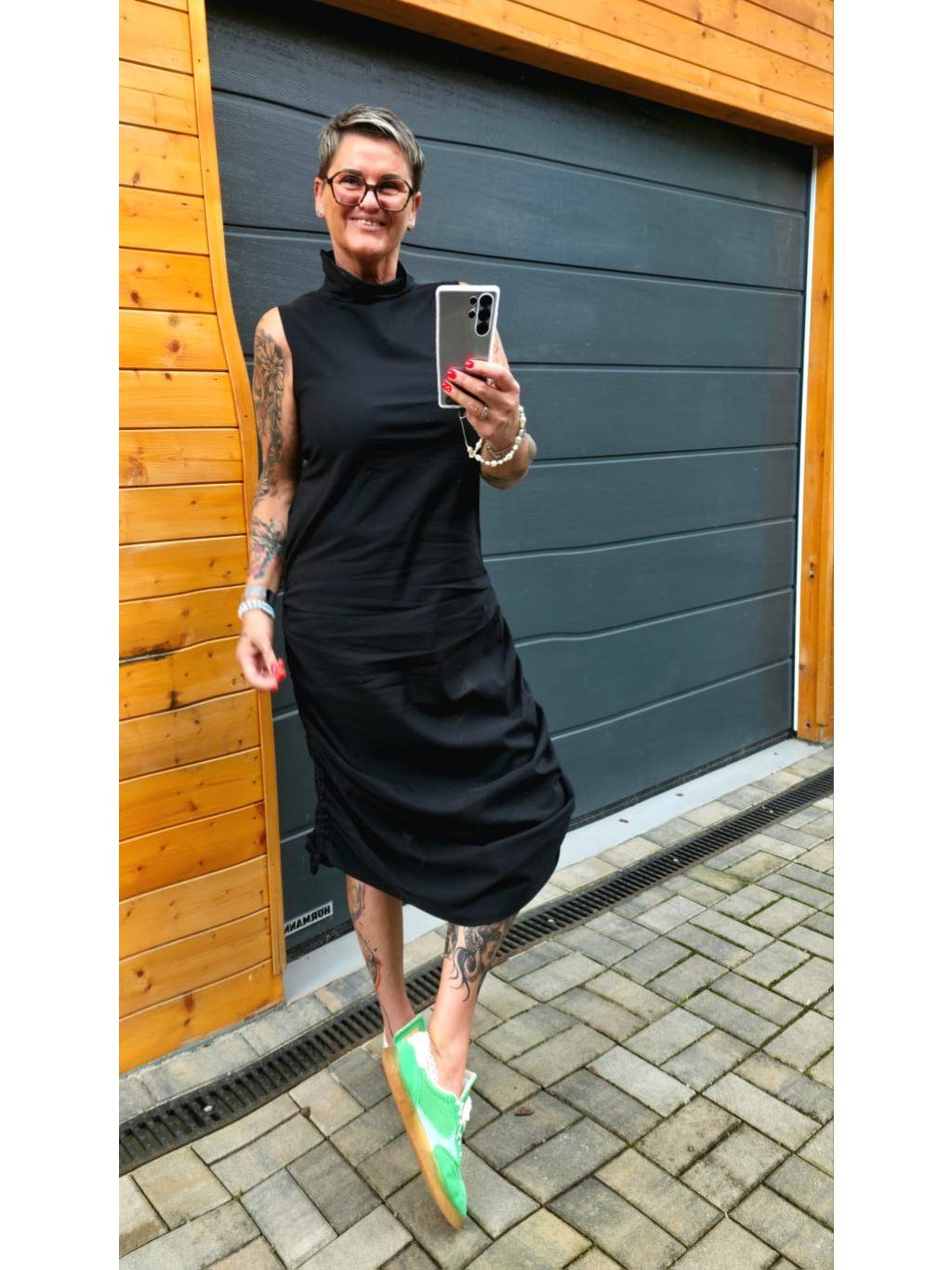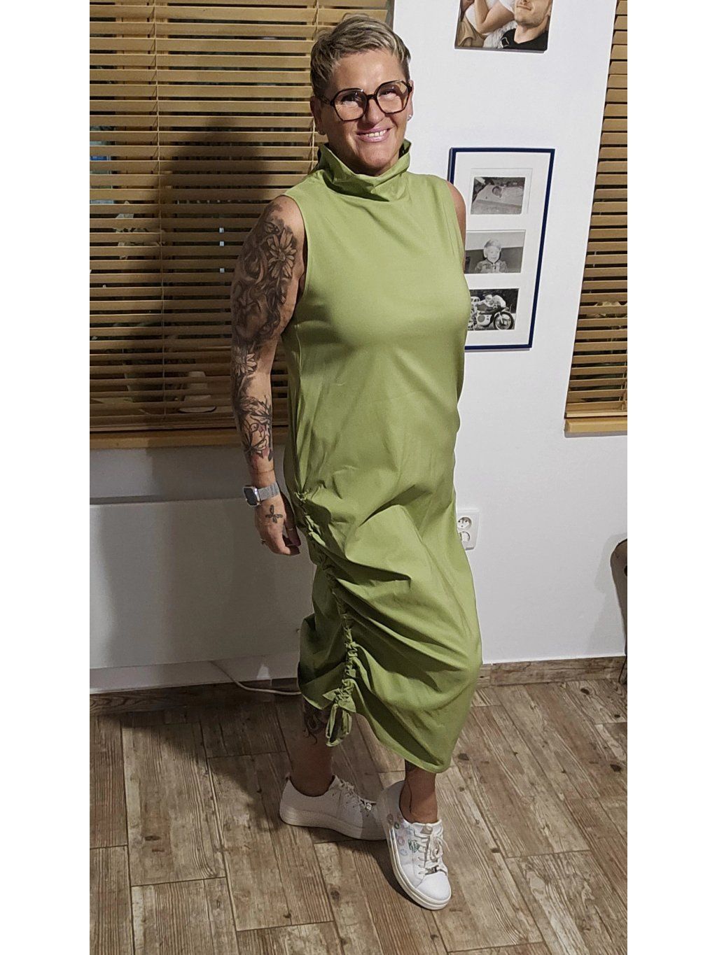 Maximálně pohodlné, a přitom stylové šaty bez rukávů se stojáčkem, kapsami a bočním řasením, díky kterému si upravíš délku i tvar podle nálady. Ideální na léto, cestování i město.