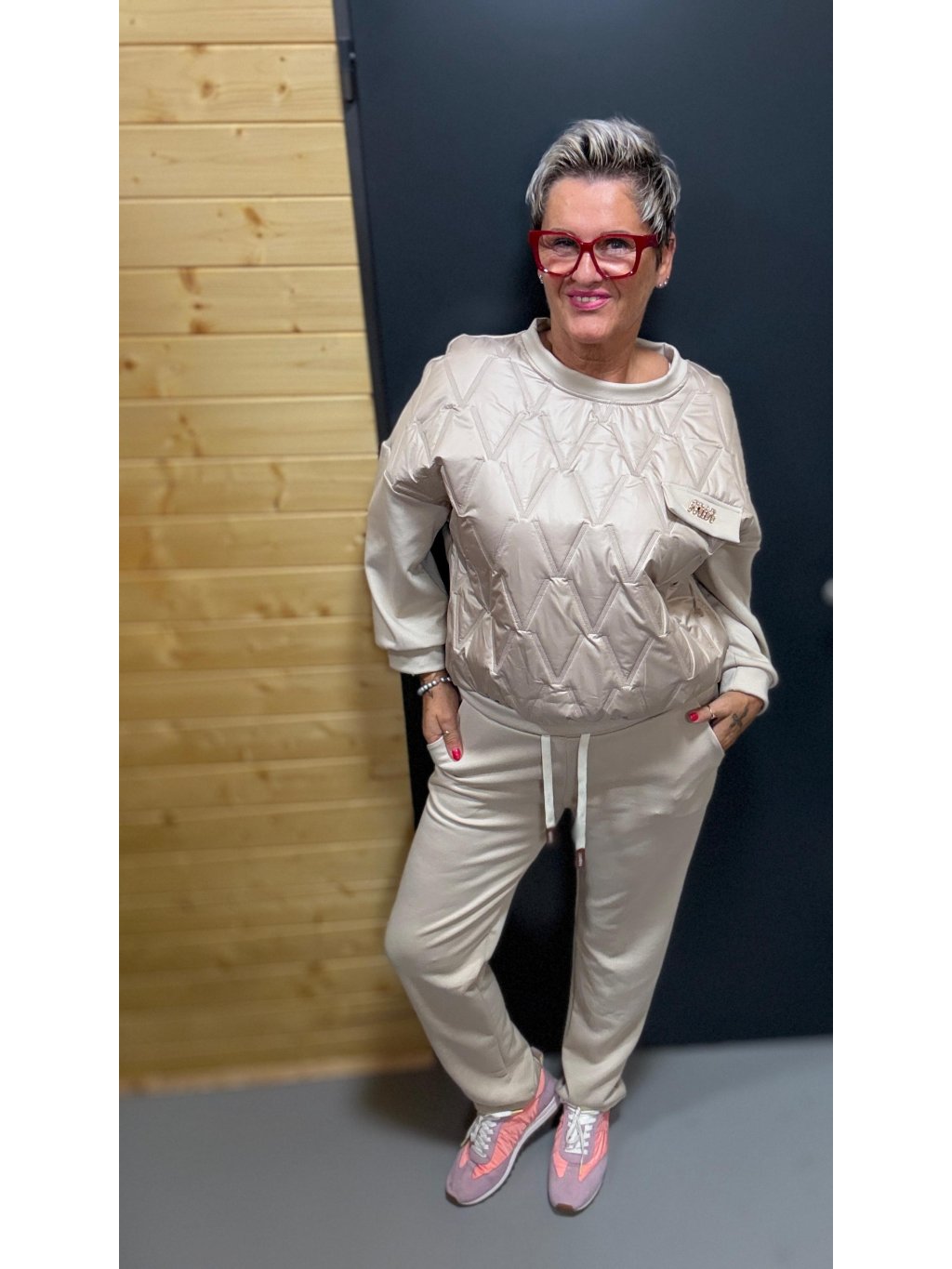 Elegantní, ležérní i stylová – přesně taková je tato tepláková souprava, která spojuje komfort měkkého materiálu s originálním prošívaným designem mikiny. Ideální na dny, kdy chceš být chic, ale v naprostém pohodlí 🫶
