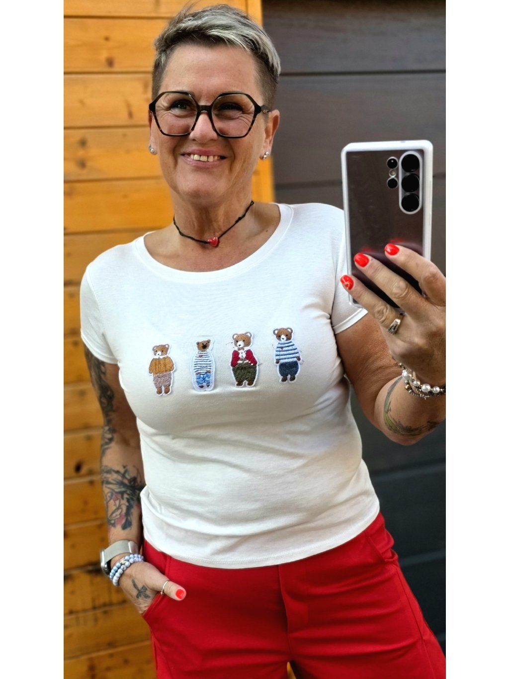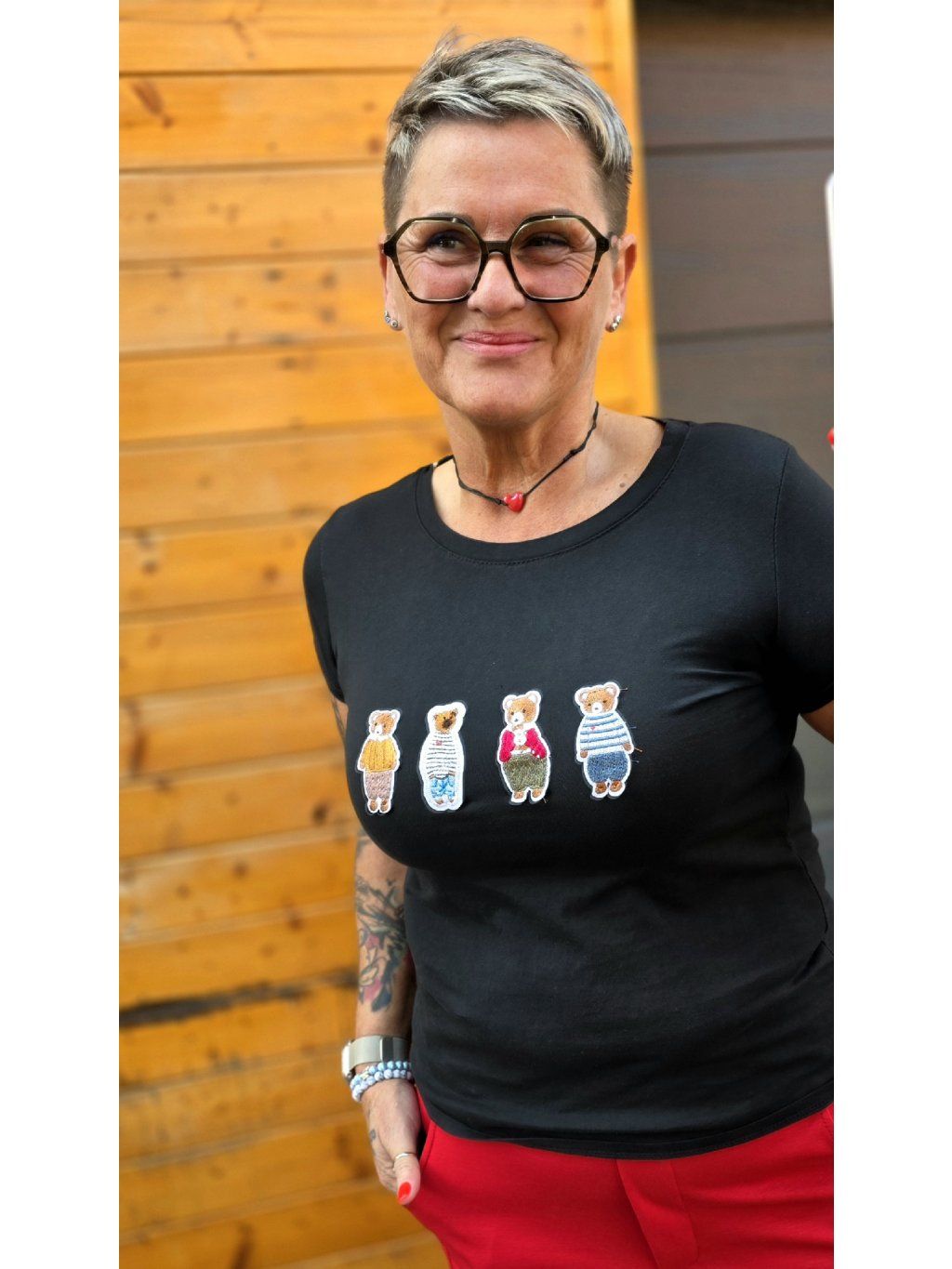 Hravé tričko s vyšívanými medvídky, které dodá outfitu osobitost a jemný stylový detail.