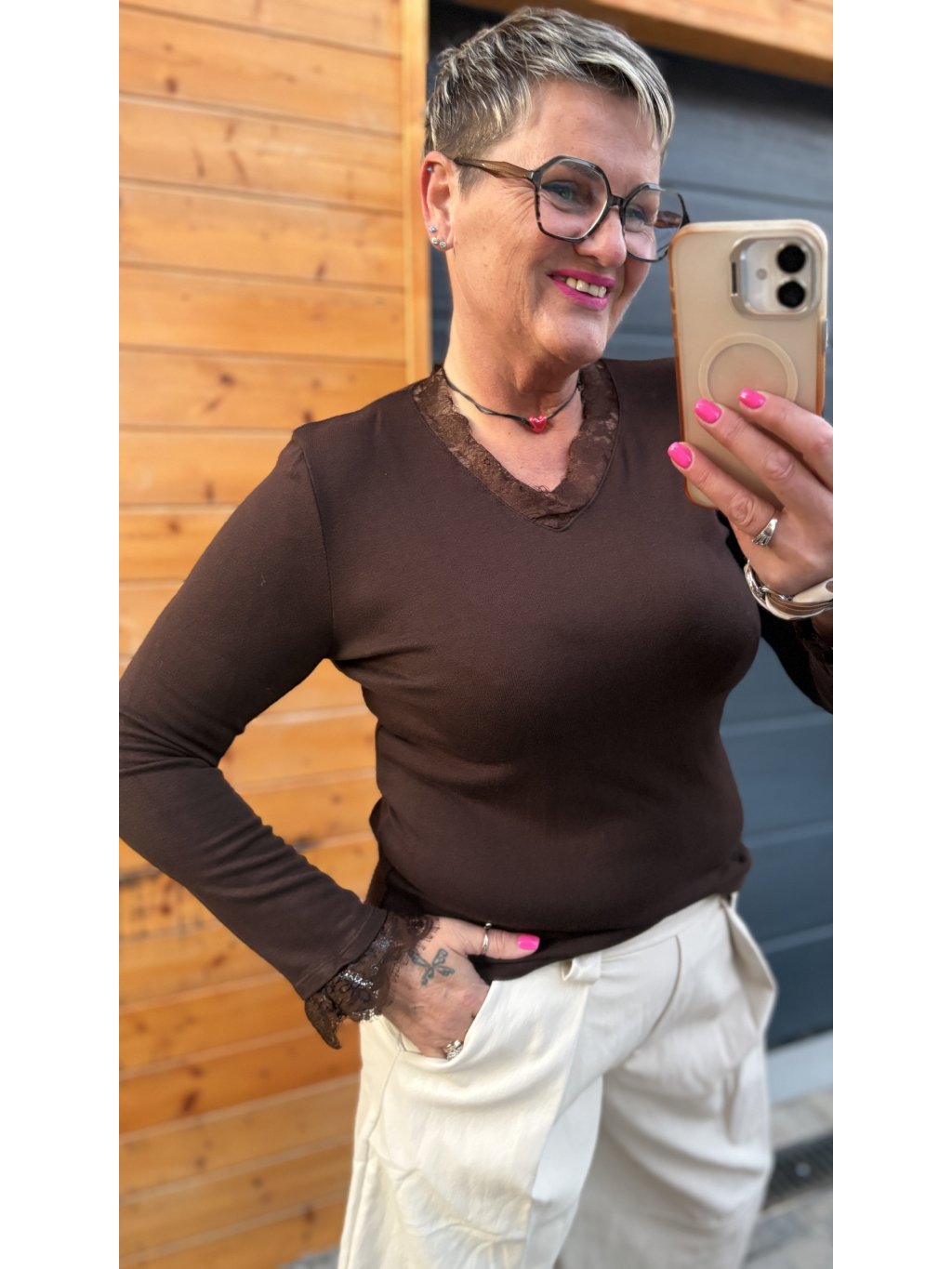 Jemná krajka je použita tak, aby neškrábala ani nekousala – klidně i pro citlivější pokožku. Triko je ideální kousek „na všechno“, který zachrání outfit ve chvíli, kdy „nemáš co na sebe“.