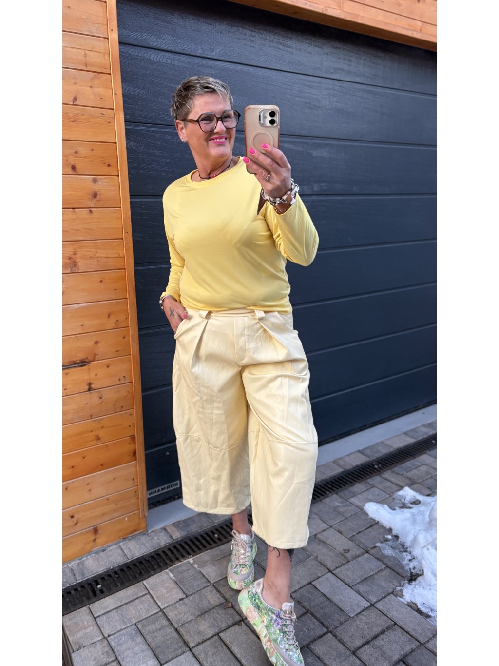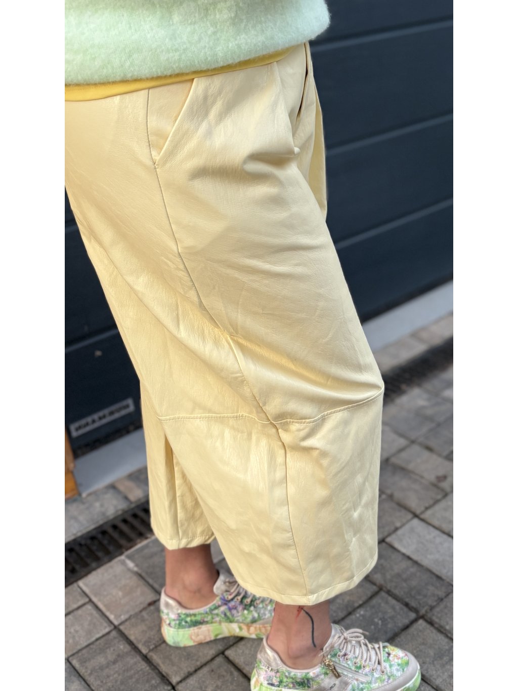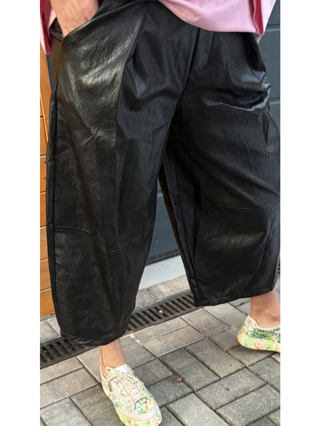 Výrazné, pohodlné a neskutečně stylové kalhoty s jemným koženým efektem. Volný střih, pružná zadní část pasu a pohodlí na celý den.